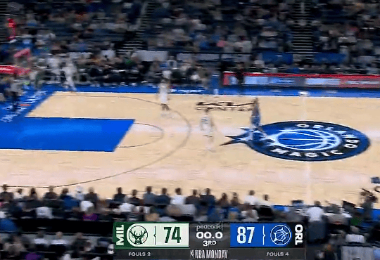雄鹿三节74-87落后魔术,魔术单节打出36-20反超并扩大领先