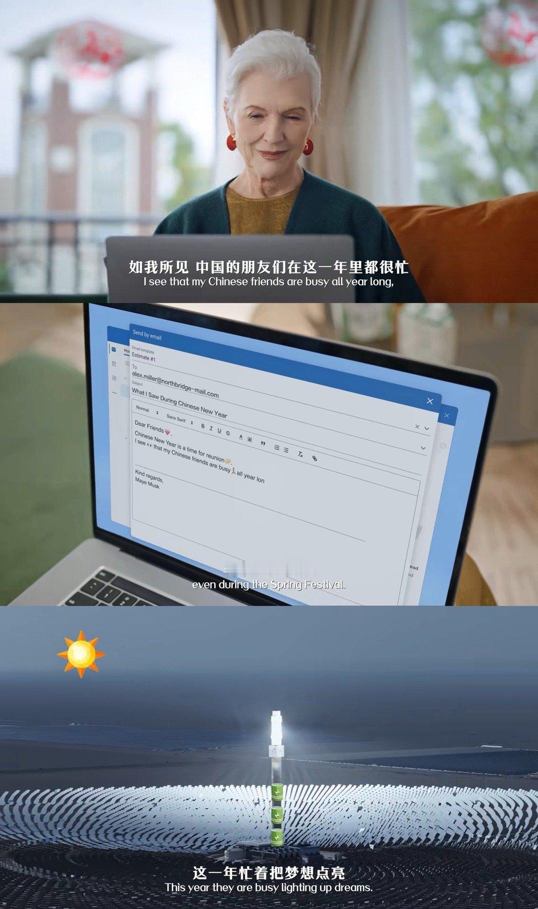 马斯克妈妈眼里的中国春节 梅耶·马斯克眼里的春节看得我心软软!不只是看到了春节的热闹,更读懂了中国人“忙碌”背后的深情。白发配红饰优雅又温暖,这份跨越国界的理解,比任何华丽的辞藻都更让人觉得暖心。