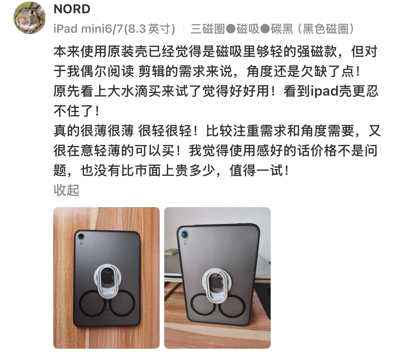 iPad mini7/6 013 平嵌壳,三磁圈重量为 66.8g 左右,比绝大