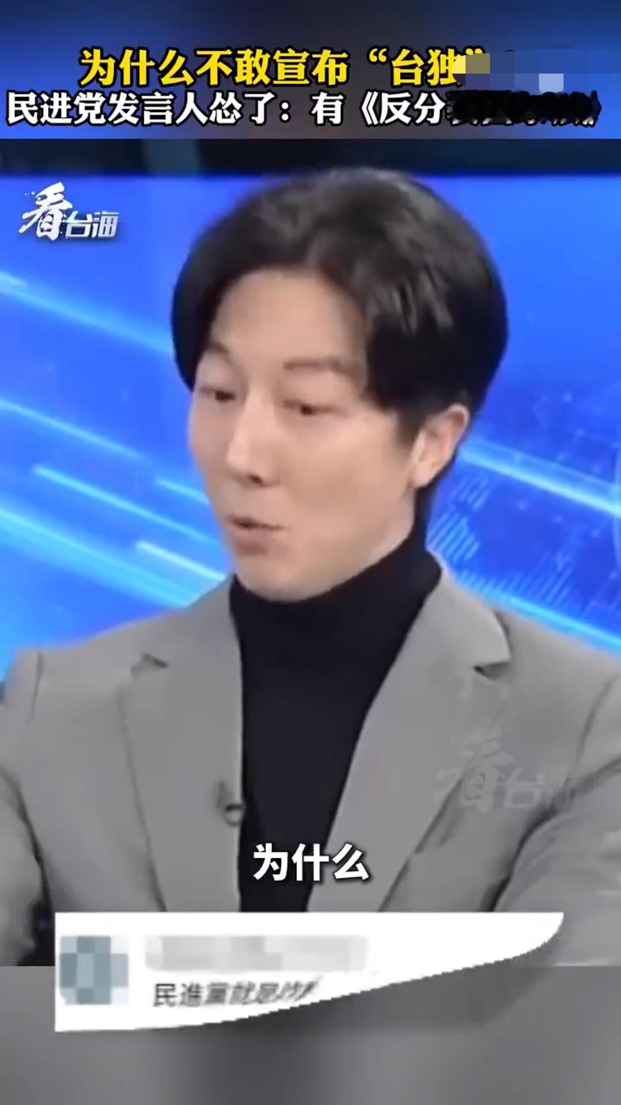 台湾民进党发言人:不是我们不想独,是因为对岸有反分裂法,独了就要被打 ,这是我们