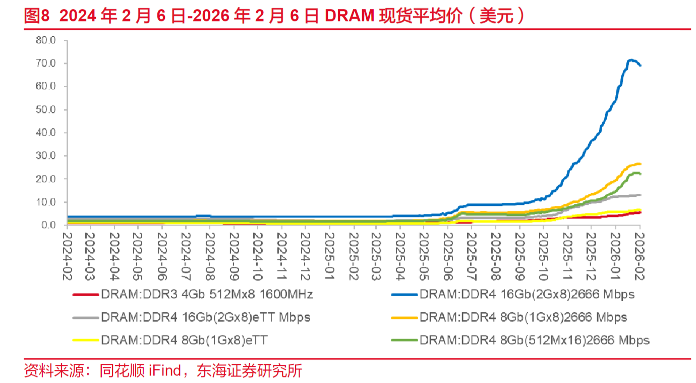 从价格端来看,据Counterpoint《2月内存价格追踪报告》显示,截至2026年第一季度,内存价格环比上涨80%–90%,迎来前所未有的创纪录暴涨。本轮上涨的主要推手是通用服务器DRAM价格大幅攀升。