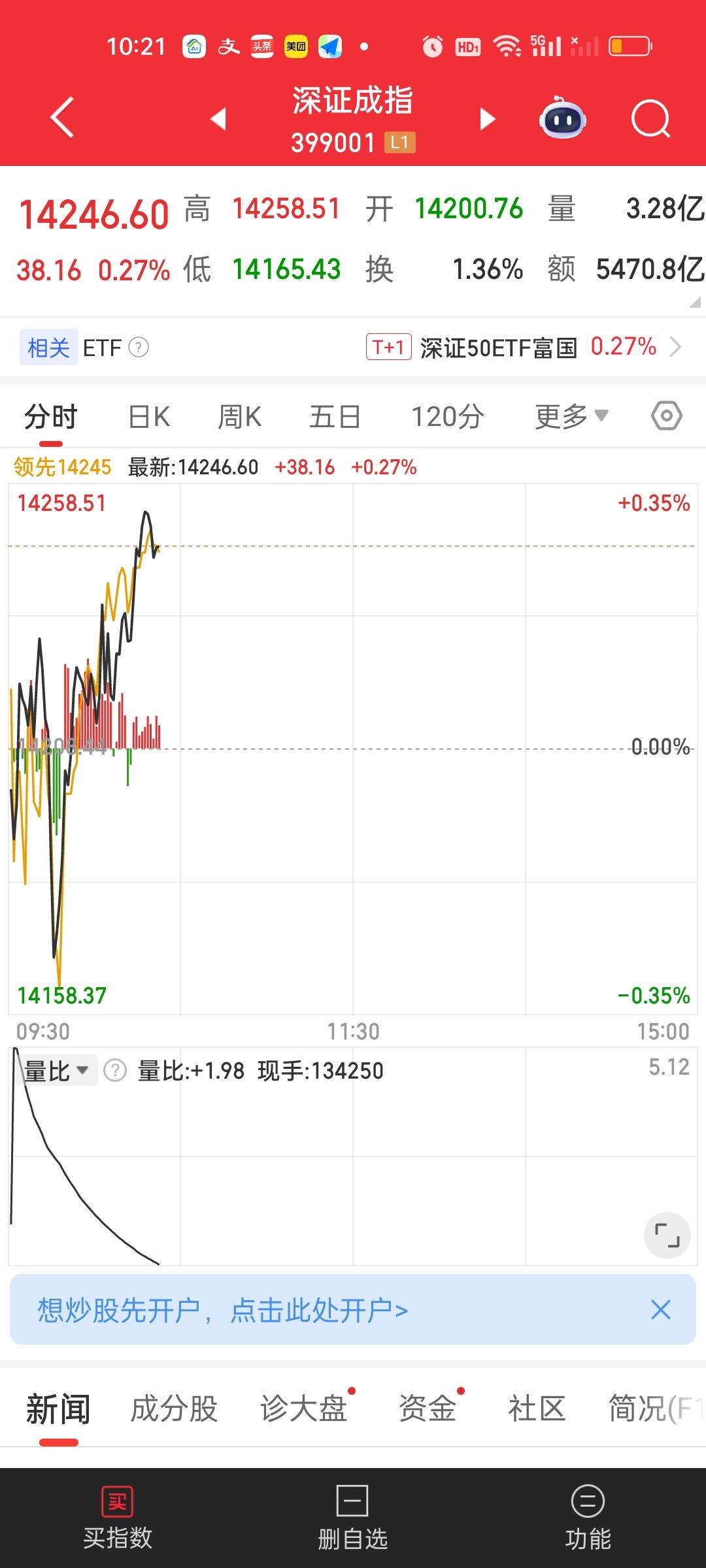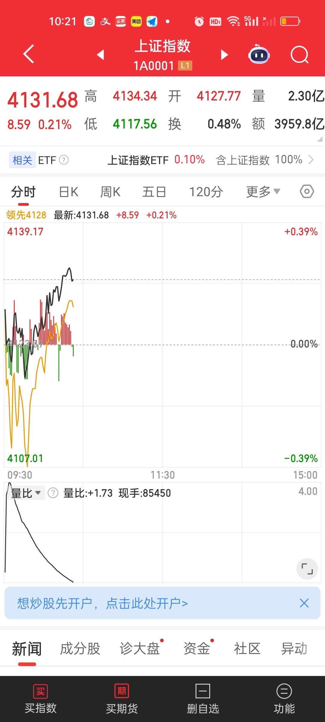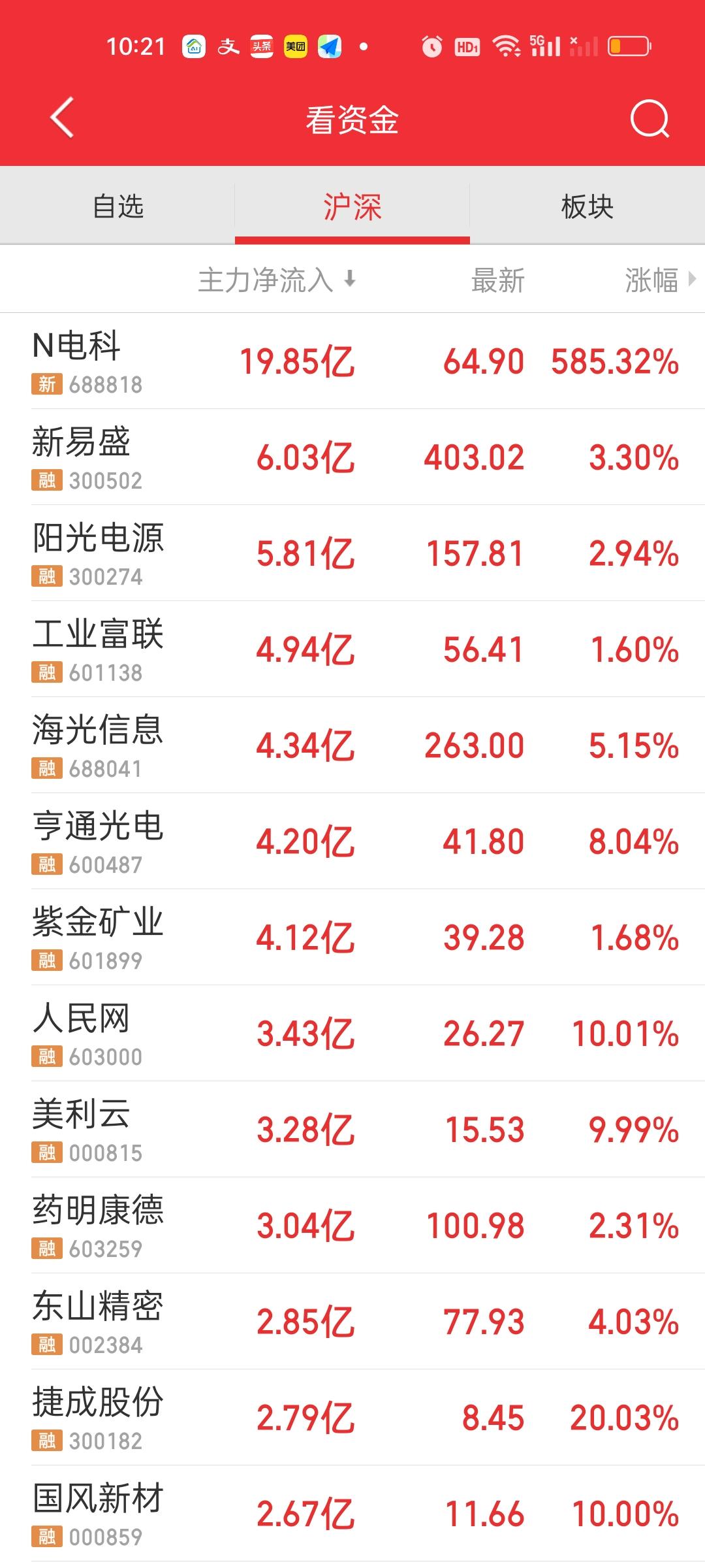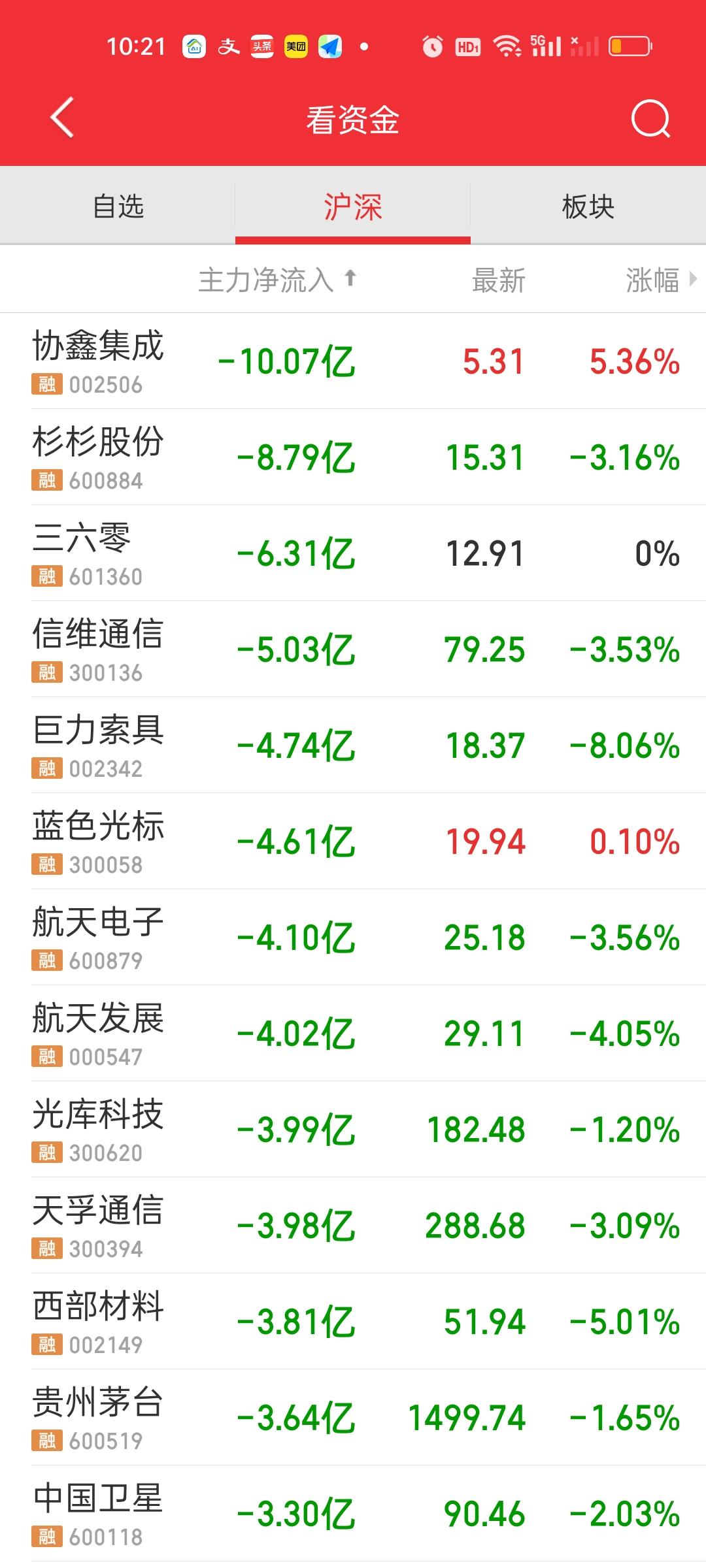 今天这个量能缩的比较厉害。开盘不到一个小时已经缩了1000亿,好在指数还是红的,大盘资金也并没有大幅净流出。上涨家数与下跌家数大体相当。涨跌停比44:4,大小盘股的表现也大致相当。 主力资金流入流出方面,没有出现个股大幅流入大幅流出的情况,总体表现还是平稳的。赚钱效应是肯定不如昨天的。