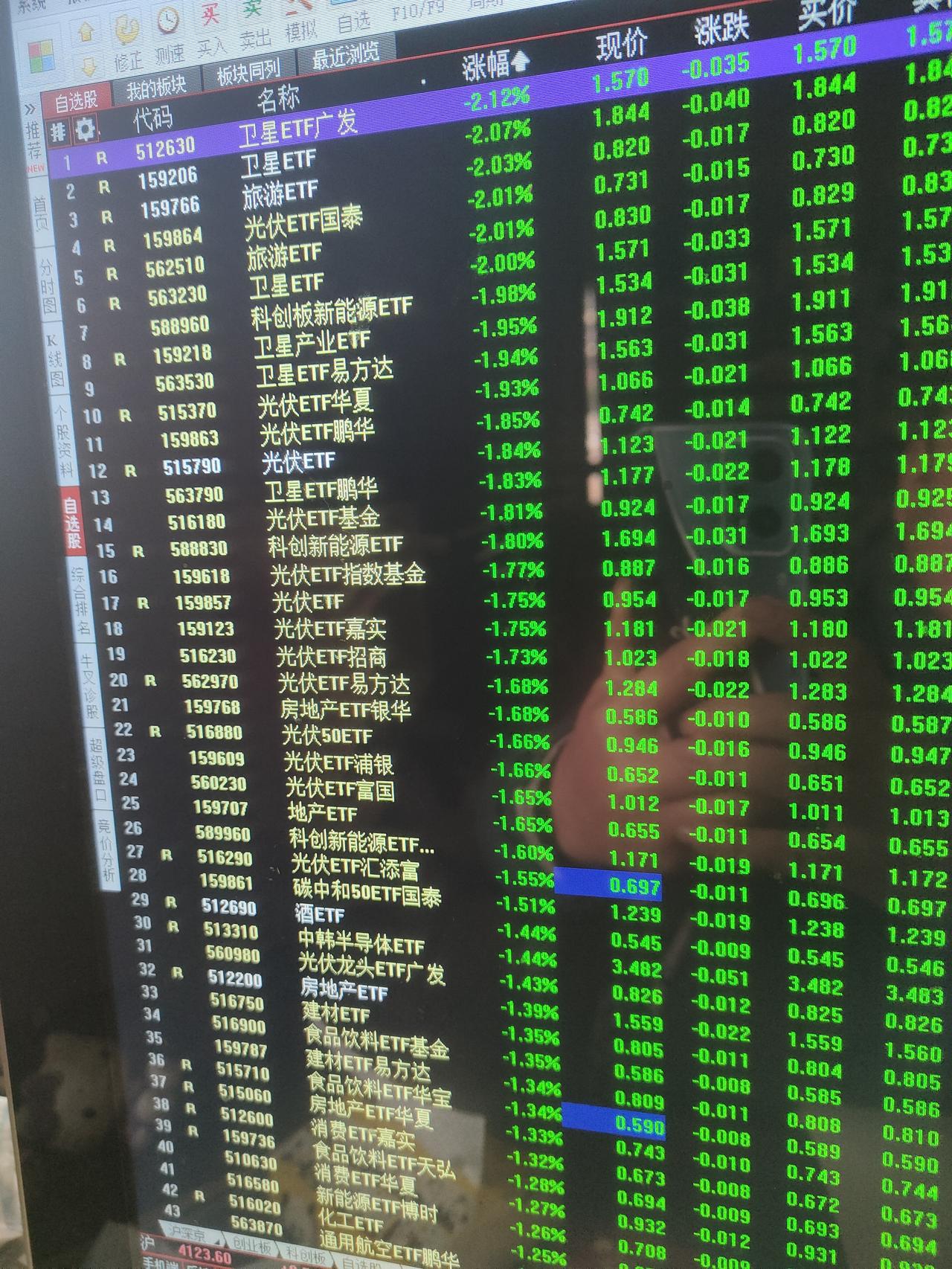 现在场外基金的实时估值又看不到,只能看场内ETF的。从场内ETF的涨跌情况来看,影视的涨幅是最大的,有接近8%。其次就是游戏,日经225,港股通创新药,恒生创新药,恒生生物科技等。跌幅榜方面,旅游,卫星,科创板新能源,光伏,地产,食品饮料跌幅都比较大。我的华富创新药刚好还持有3000,今天有望一把转正!