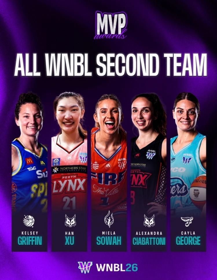 直播吧2月10日讯WNBL官方宣布,珀斯山猫球员韩旭当选本赛季最佳防守球员,同时入选了WNBL常规赛第二阵容。