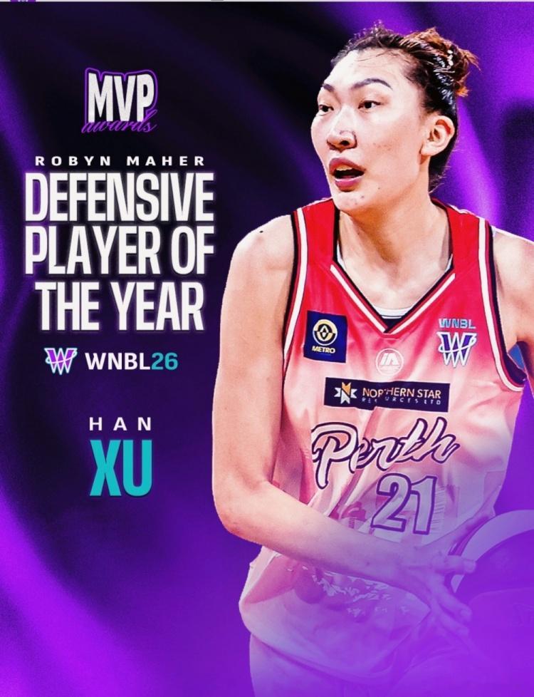 入选WNBL二阵+最佳防守球员!韩旭:很荣幸!会继续努力!