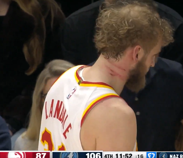 美媒BleacherReport分享动态:兰代尔在里德和古耶冲突时拉架,结果脖子被抓伤了。