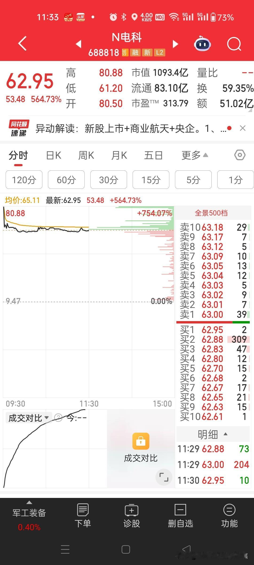 同一天上市命运不同,一个高开大涨750%,一个高开上涨67%。 新股N电科高开750%,报80.5元。公司本次公开发行股份数量为1.74亿股,发行价格为9.47元/股,发行市盈率为56.79倍。中电科蓝天科技股份有限公司主营业务是电能源产品及系统的研发、生产、销售及服务。公司的主要产品及服务包括宇航电源、特种电源以及新能源应用及服务。 乐居财经 吴文婷 2月10日,林平发展(603284.SH)在沪主板挂牌上市,保荐机构为国联民生证券。其开盘报63.11元,涨66.61%,总市值约47.59亿元。