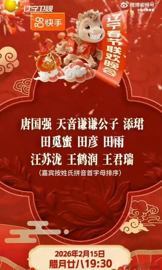 2026辽宁春晚全阵容官宣 声动辽沈,乐暖新春!孙楠、黄霄雲以歌声致敬团圆,就在辽宁沈阳,2月15日晚,用天籁之音陪你度过温馨时光!辽宁春晚