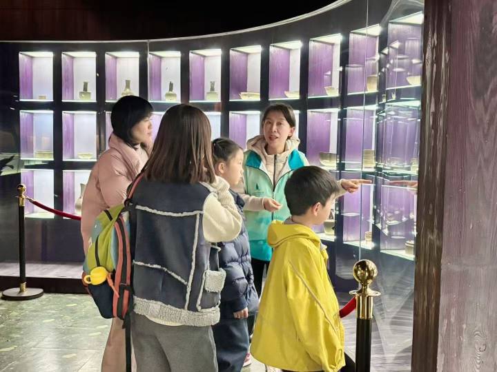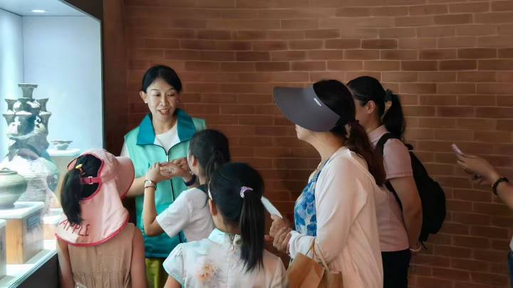 成为母亲后,她常带着孩子打卡各地风景名胜,配合学校的第二课堂实践。2017年11月,她偶然看到博物馆志愿者招募信息,第一时间报名,顺利通过培训、考核,踏入了她喜欢的文旅领域。她以志愿者的身份,继续为游客讲述杭州的故事,她将这份对家乡的热爱,默默传递了9年。