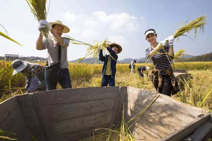 因为快报,她与建德钦堂好米的线下活动结缘。2019年10月,与橙柿一起,她第一次拿起镰刀下田割稻,体验农耕乐趣;2020年再度赴约,也正是这次活动,她遇见了快报美食记者@唐怼怼,从此一头扎进美食吃货圈,解锁杭城吃喝的新乐趣。