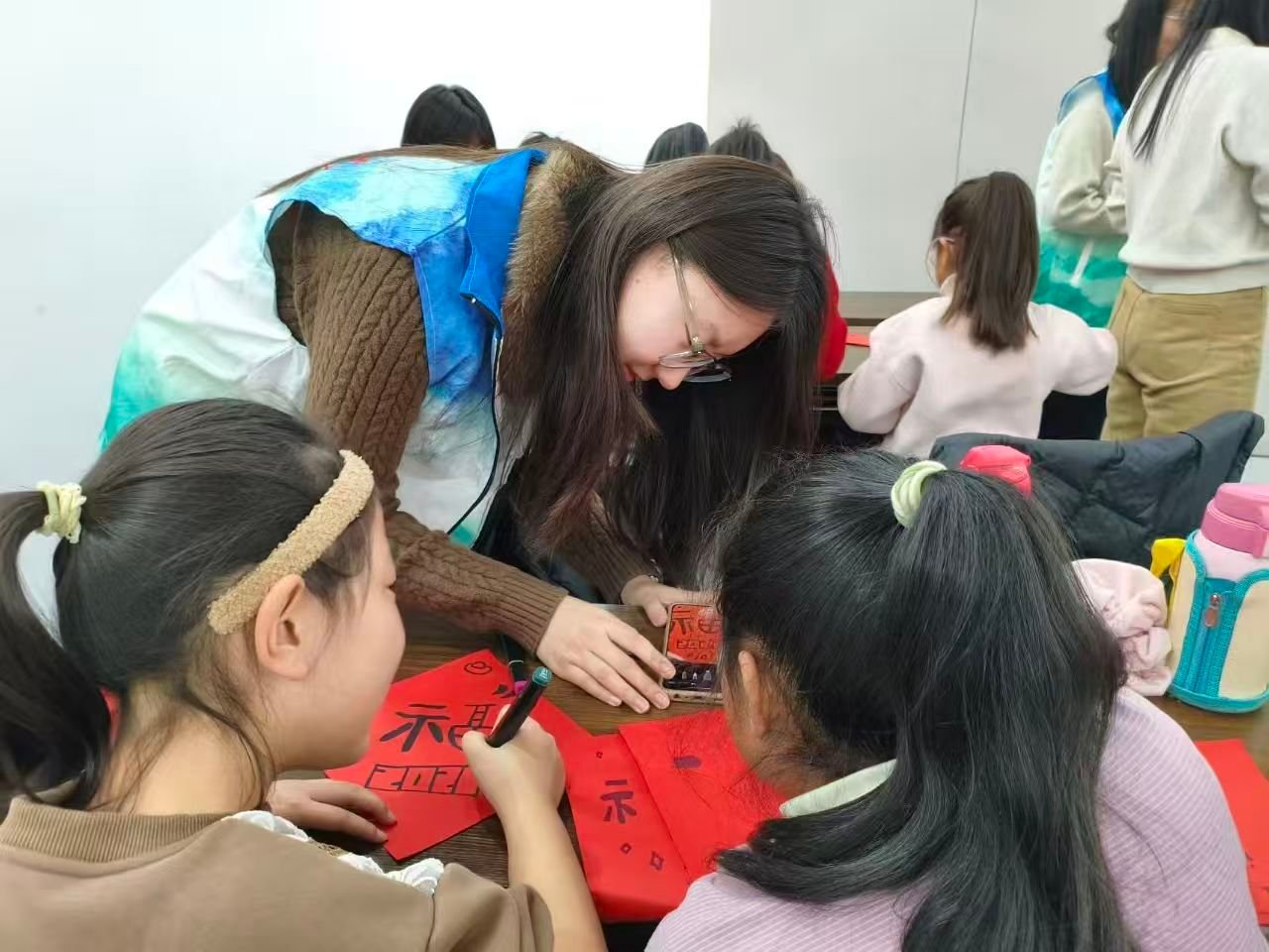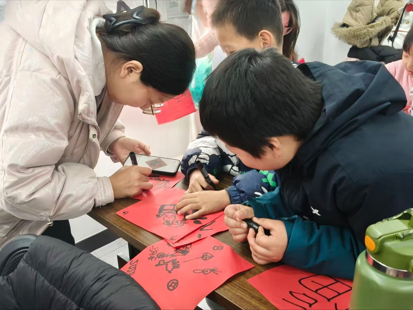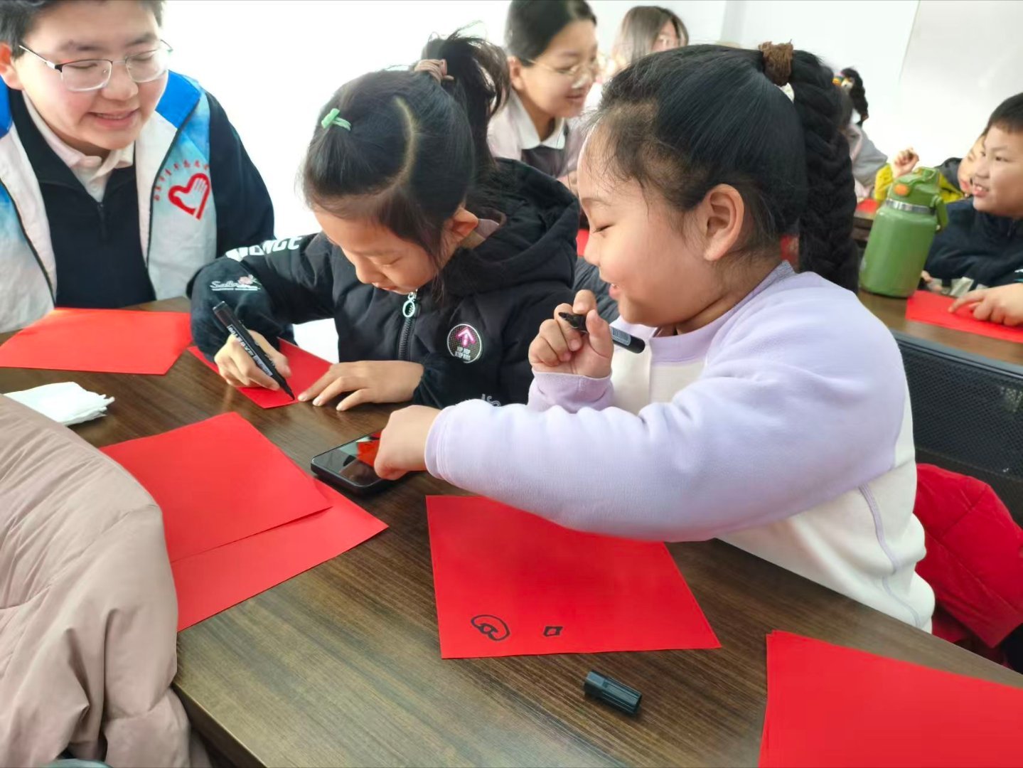 秦岭笑谈 【福字绘新意,童心贺新春——曲阜师范大学“心芽向愿,妙启童知”实践队创意福字课堂纪实】2026年1月17日,“心芽向愿,妙启童知”社会实践队在社区活动室开展创意福字课堂,带领孩子们用画笔为传统“福”字注入童趣与巧思,共迎马年新春。在课堂上,队员们用手机展示创意福字的设计范例,引导孩子们结合马年生肖元素,在红纸上发挥想象。有的孩子将“福”字与小马图案融合,有的添上喜庆的鞭炮纹样,每一笔都藏着童真的巧思。队员们俯身陪伴,耐心指导孩子们调整线条、搭配图案,让传统福字在孩子的笔下焕发新生。活动室里,专注的神情与欢快的笑语交织,红纸与黑笔的碰撞间,满是新春的暖意。此次活动让队员们深刻体会到,文化传承不是刻板的复制,而是让孩子在创造中读懂传统、爱上传统。大家表示,通过陪伴创作与亲身体验,传统年俗文化变得生动可感,增强了自身对中华优秀传统文化的认同与传承使命。青春三下乡社会实践曲阜师范大学曲阜师范大学超话大学生寒假三下乡感悟中的三下乡山东学子将青春写在大地上山东学子实践青春行大学生社会实践三下乡社会实践公益行三下乡超话三下乡(投稿人:
