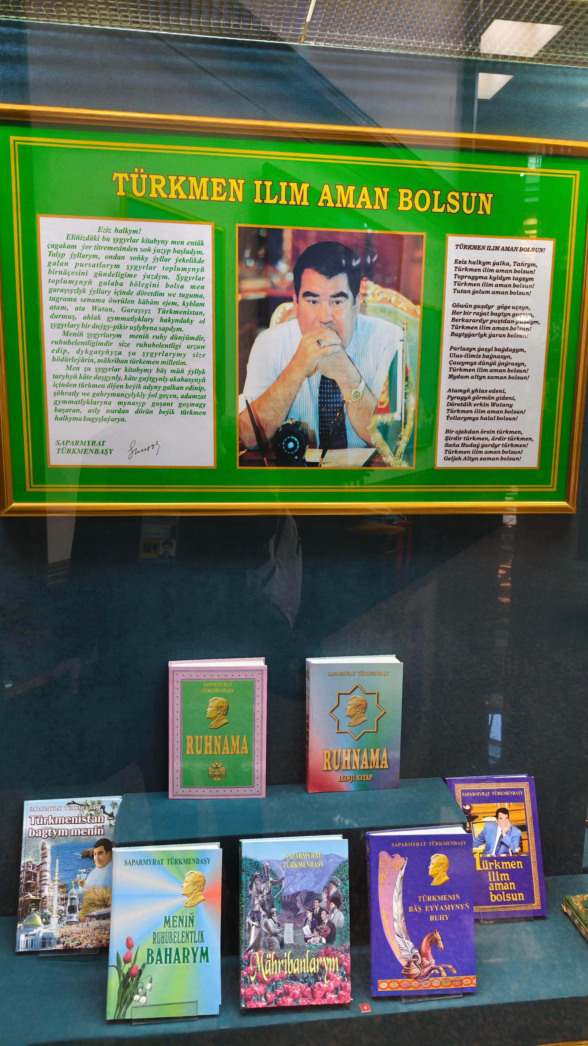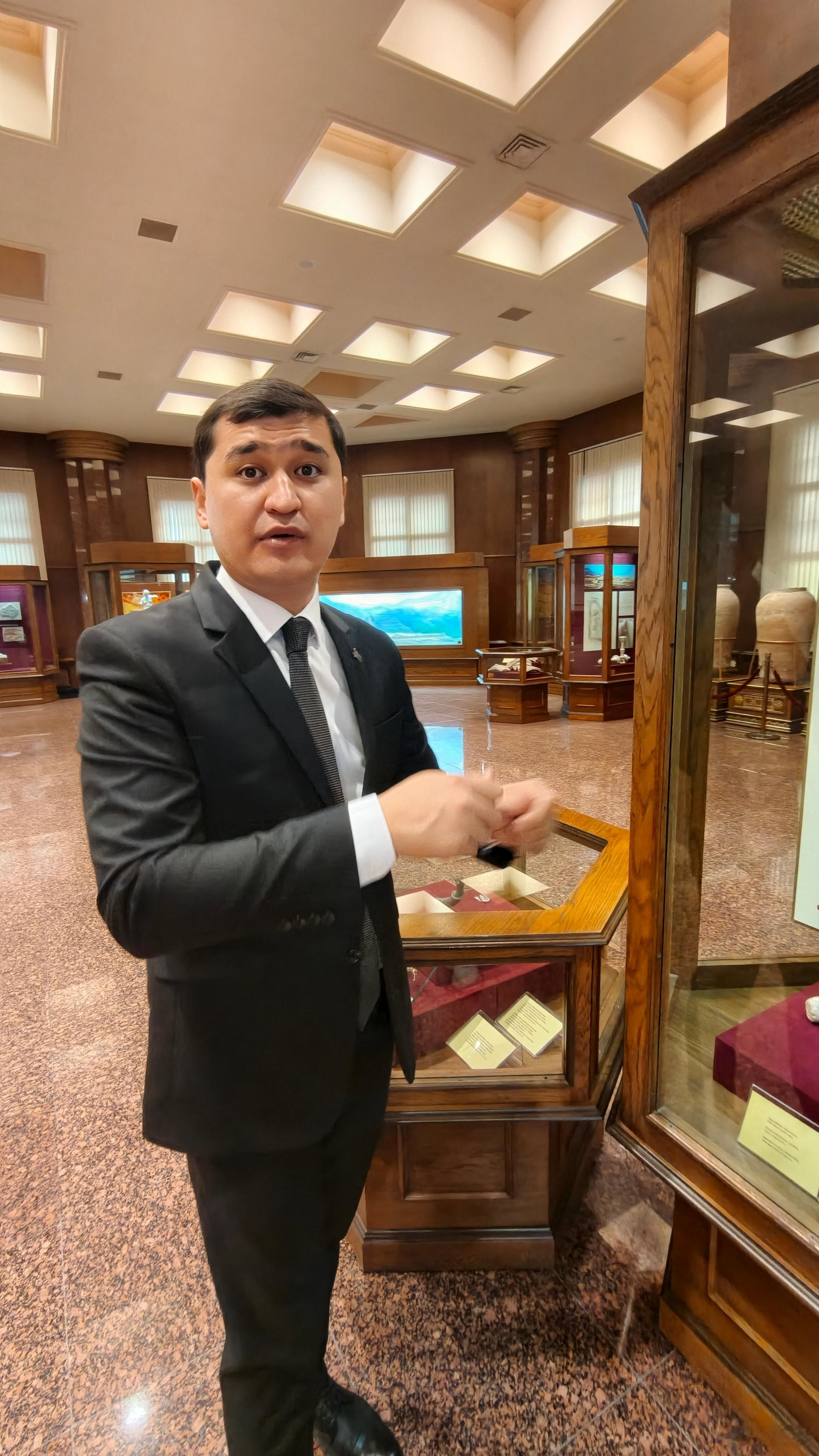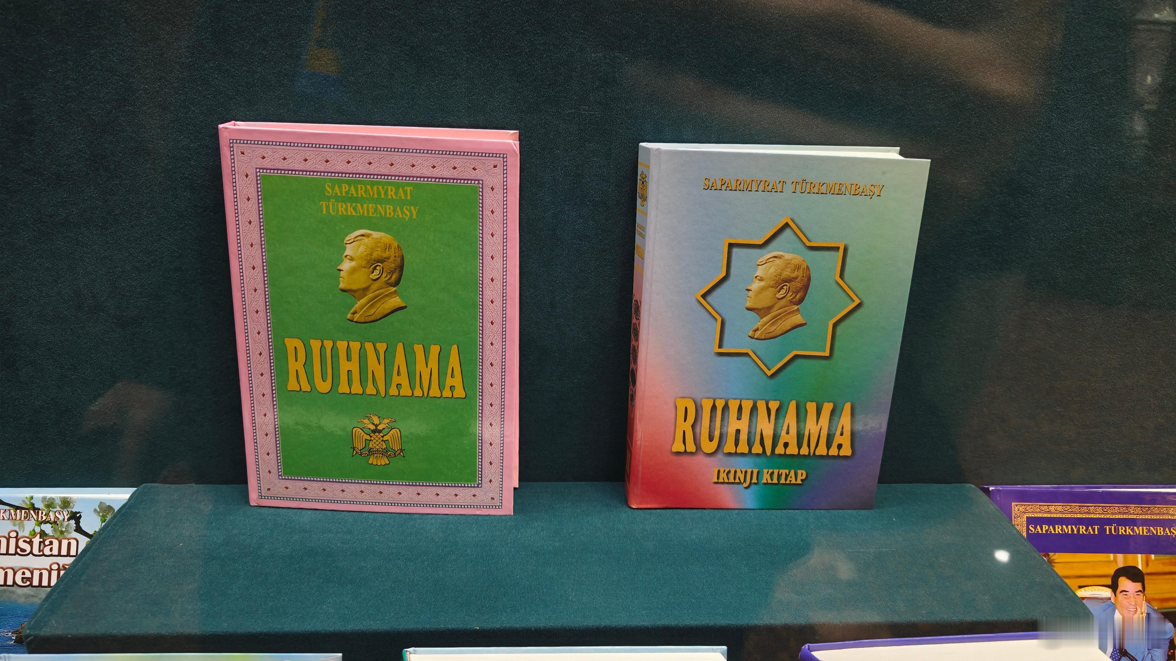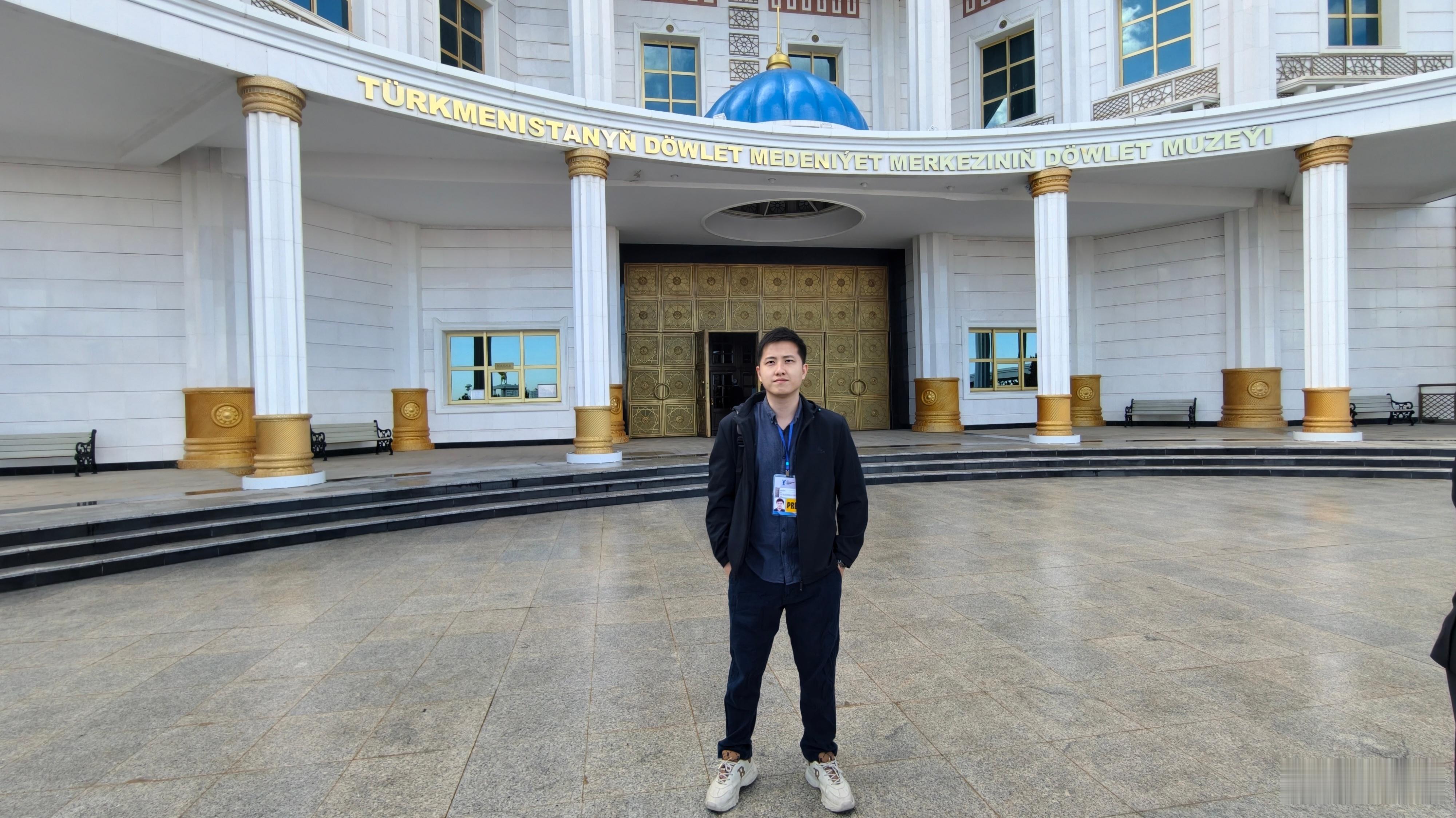 今天阿什哈巴德的天气很适合参访,一早上就在带我们逛博物馆,看到了该国著名的绿宝书《鲁赫纳玛》,作者是首任总统尼亚佐夫,馆方的讲解员告诉我这本书就是关于土库曼斯坦的历史,然后我问了一下他们现在考驾照还要不要考这本书,他说现在不用了,只用考交通规则……
