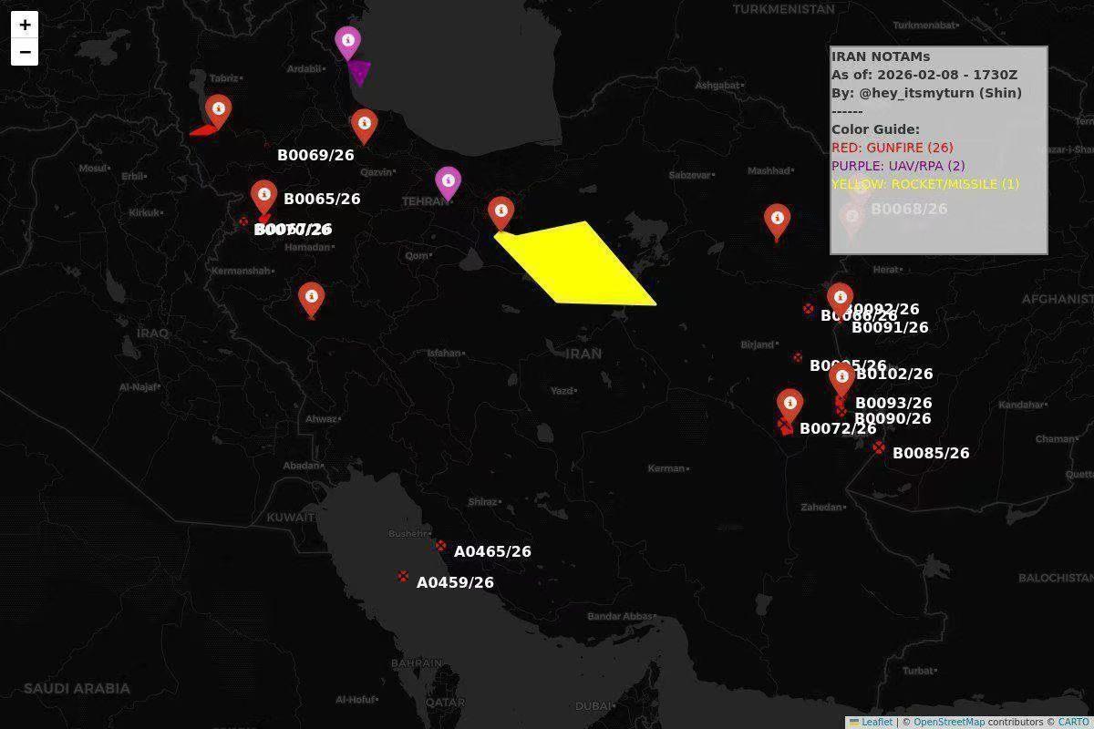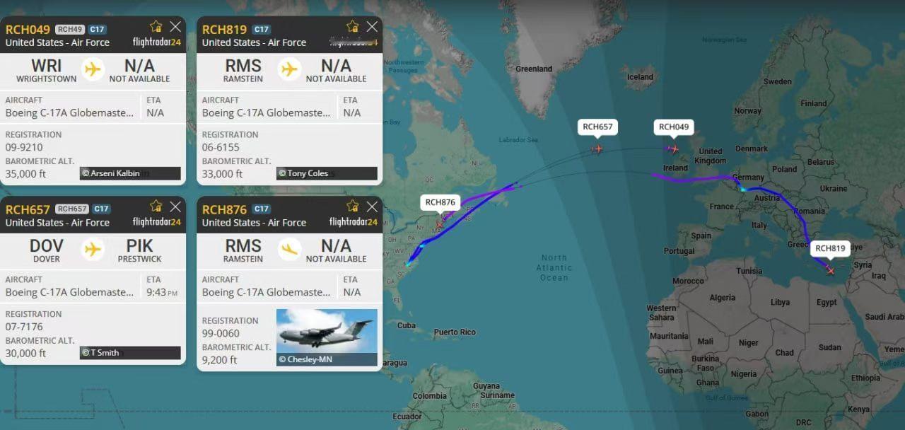美军向中东派遣的运输机仍保持持续高度活跃,飞行软件显示, 又有10架C-17运输机飞抵中东(图一图二),伊朗也没闲着, 几乎每天都会划禁飞区, (图三)是禁飞区, 说是试射导弹, 射没射没人知道。