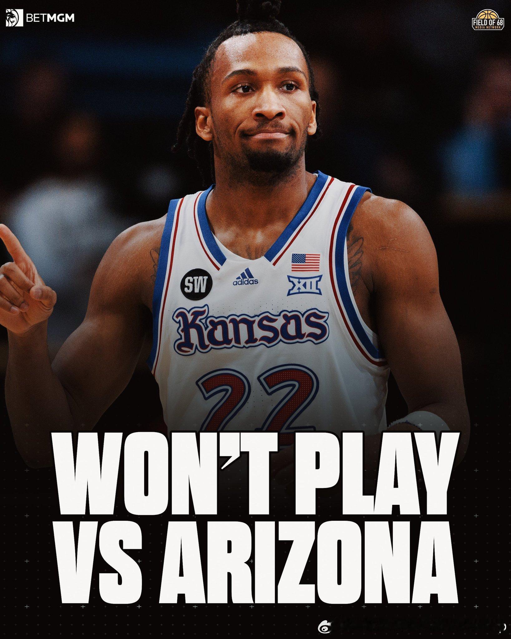 Darryn Peterson缺席的堪萨斯大学击败全美头号种子亚利桑那大学NCA