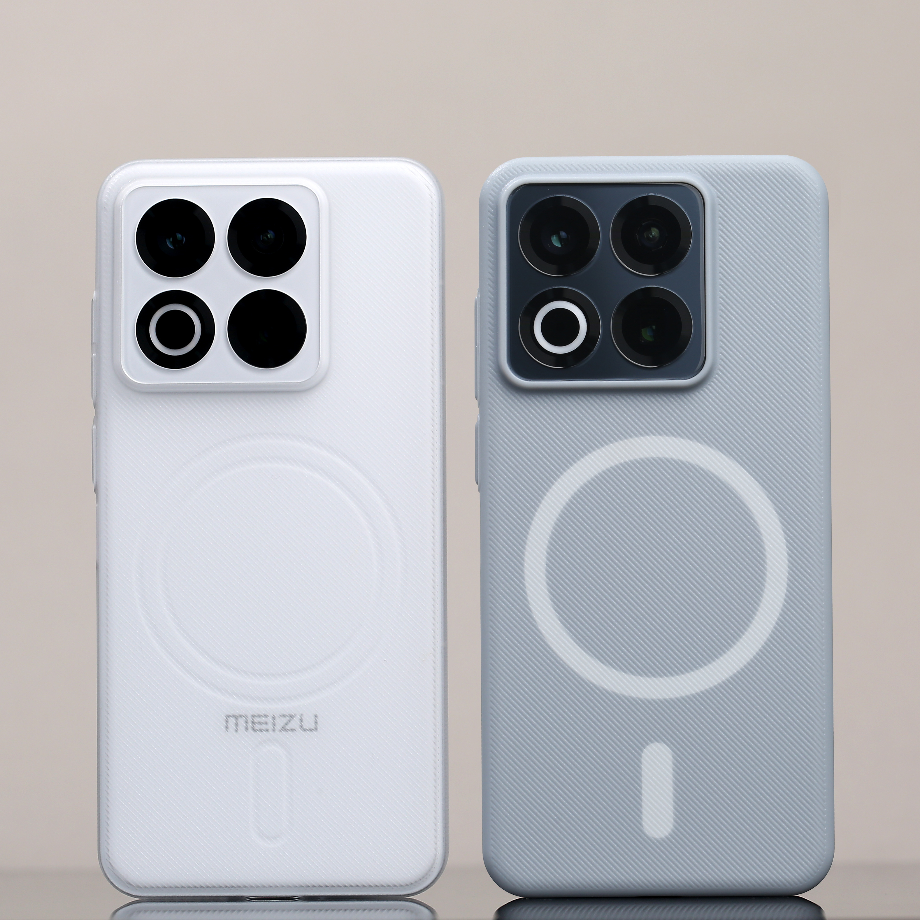 魅族 22 轻薄 PC 斜隐,磁吸款也轻至 16.3 克左右纯平磁圈无凸起,吸力