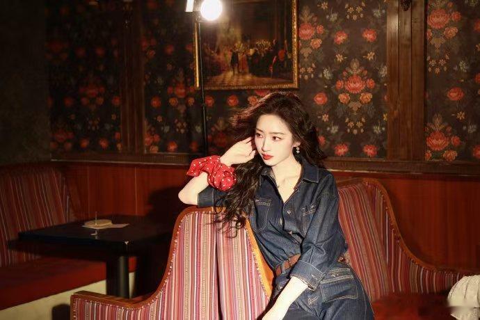 邓恩熙红唇大波浪 邓恩熙这造型太可!红唇大波浪超有感觉,卷发搭肩,红唇亮眼,牛仔波点平衡,90年代感十足!