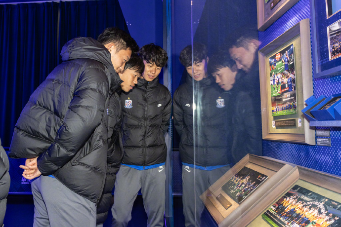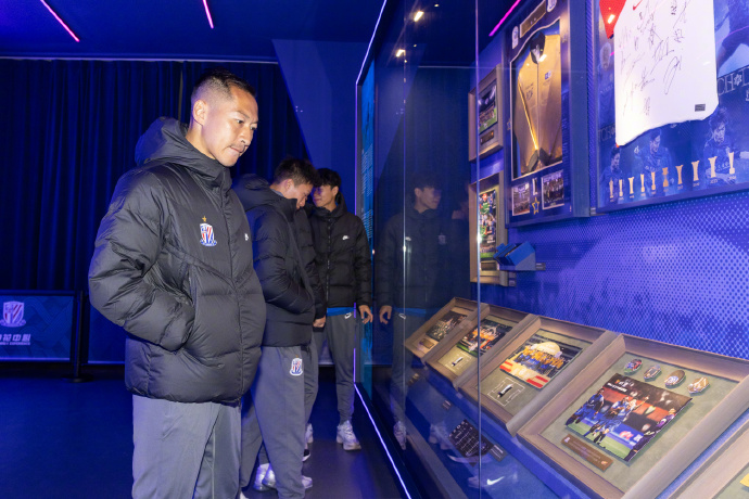在申花中心的长廊中,教练和球员们通过一件件藏品、一帧帧画面、一幅幅实景,近距离了解感受申花的历史与文化传承。这也将激励着全体将士在即将开始的新赛季中发扬“申花精神”,为球队奉献自己的力量。