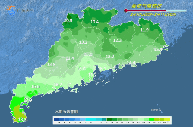 最低气温也将逐渐回升:11日,粤北市县10~12℃,粤西市县16~20℃,其余市县13~16℃。12-13日,粤北和粤东市县11~13℃,粤西市县17~20℃,其余市县13~17℃。