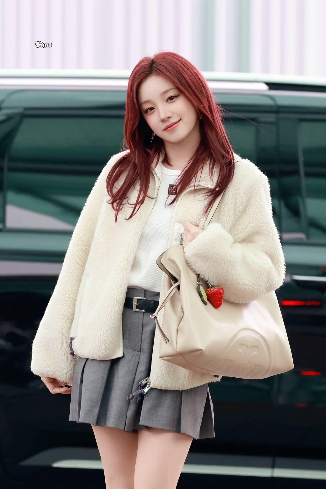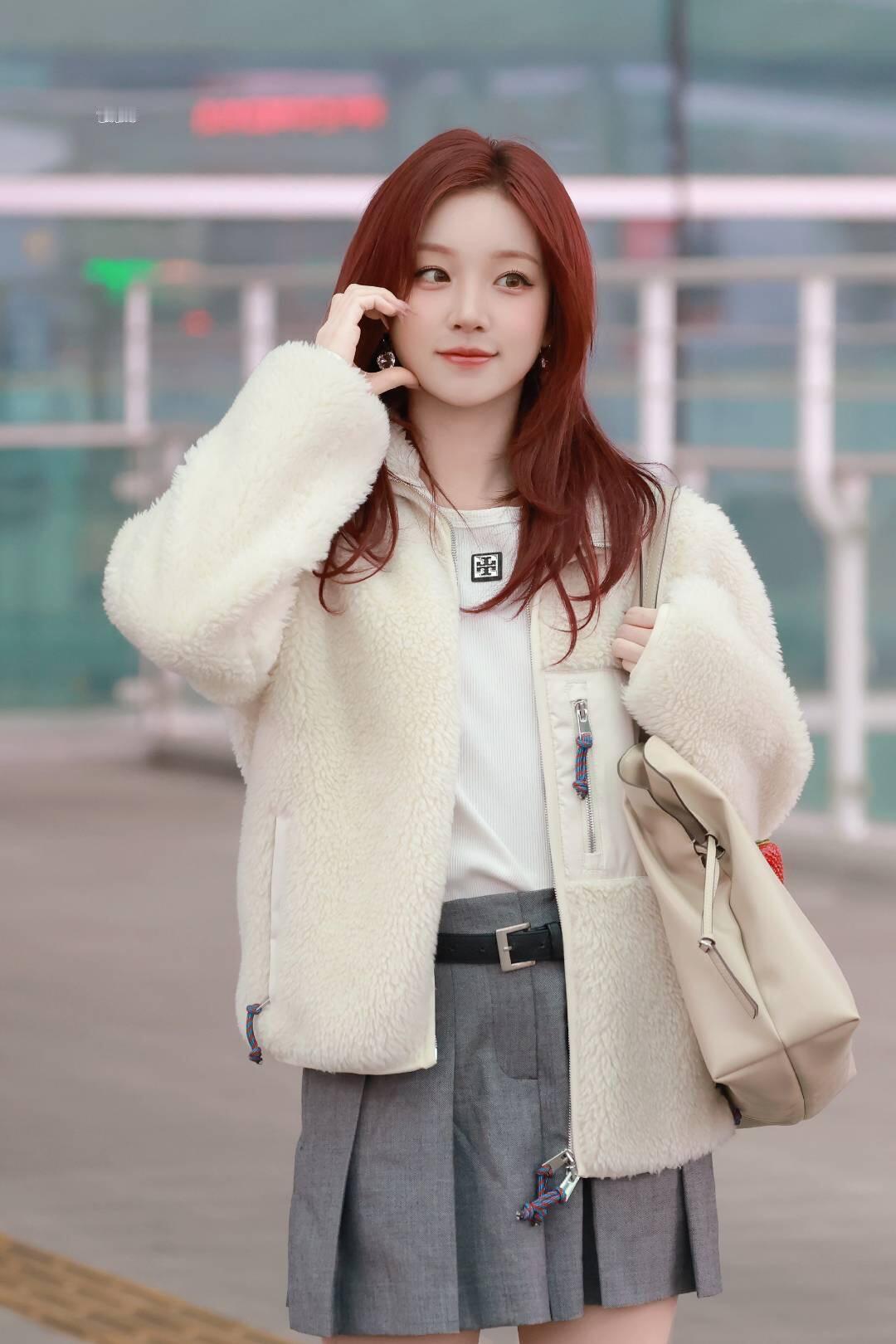 普通人怎么看时装周时装周 宋雨琦一身TORY BURCH出发纽约时装周 纽,米白毛绒外套搭配灰色百褶短裙,清新减龄。配饰细节满满,CURIOSITY系列心形与蝴蝶结耳环、草莓和贝壳钥匙圈,再配上ELLA抽绳托特包和T MONOGRAM STAGE运动鞋,整套机场look元气时髦,少女感拉满。