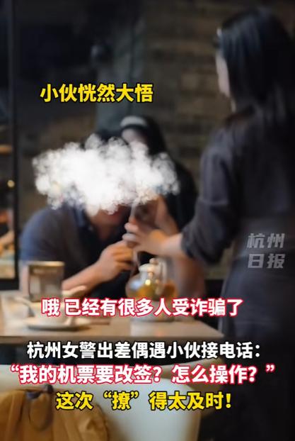 两名女警立大功!2025年广州,2名杭州女警出差就餐时,无意间听到后桌男子与”航空公司客服“通话,得知飞机故障需要退改签,女警瞬间警觉这是一场诈骗,随后一个举动,反诈成功。 谁能料到,出门在外出差办案,简简单单吃一顿日常便饭,还能当场截停一场蓄谋已久的电信诈骗? 广州的街头总是透着热闹的烟火气,街边的家常菜馆里坐满了往来食客,交谈声、餐具碰撞声交织在一起,满是鲜活的生活气息。 有两名来自杭州的女警结束了当天的出差工作任务,拖着些许疲惫的身子走进这家餐馆,只想简单吃点东西休整一番。两人穿着便装,和普通的出差旅客没有任何区别。 找了个靠窗的位置坐下,点了几道家常菜品,安静地聊着工作上的收尾细节,完全沉浸在放松的就餐状态里,谁也没有想到,一场意外的反诈行动即将在身边发生。 就在两人准备动筷用餐时,身后不远处的一桌传来了清晰的通话声,声音顺着喧闹的环境稳稳飘到她们耳边。 一名年轻男子正拿着手机,语气带着几分焦急地和电话那头的人沟通,话语里反复提到飞机出现机械故障、需要紧急办理退改签手续。 还在按照对方的引导,准备提供个人相关信息,甚至流露出要配合转账的意向。 常年扎根反诈一线的职业本能,让两人瞬间放下了手中的餐具,眼神快速交换了一下,不动声色地留意起男子的通话内容。 飞机故障、紧急退改签、索要个人信息、引导资金操作,这些字眼组合在一起,正是近期全国高发的机票改签类电信诈骗的典型话术。 这类骗局专门瞄准出行旅客,骗子会利用改号软件伪装成航空公司官方客服,还会通过非法渠道获取旅客的航班信息,一开口就能精准报出航班号、出行时间,快速获取受害者的信任。 再以航班故障、取消、超售等理由制造焦虑情绪,抓住旅客担心耽误行程的心理,一步步诱导旅客转账或是泄露银行卡、验证码等敏感信息。 每年都有不少旅客因为着急处理行程问题,一不小心就落入骗子精心设计的圈套,时间紧急,听见男子还在跟诈骗分子通电话。 彭警官立刻从手机上找出近期相似诈骗案件的通告,转头跟男子对视一眼,随后走上前来,让男子看清楚自己手机上的内容。 警情通报里清晰标注了此类骗局的完整作案手法、常用话术和防范要点,每一项都和男子正在接听的电话内容完全吻合,直观又有说服力。 男子对照着警情通报和电话里的话术,瞬间反应过来自己险些落入骗局,后背瞬间冒出冷汗,当即果断挂断诈骗电话。 不停向两位女警道谢,坦言自己正准备按照对方要求转账,若不是被及时制止,辛苦积攒的积蓄就要全部被骗走。 随后两位女警耐心地给男子讲解反诈防范技巧,告知他遇到航班退改签问题,一定要通过航空公司官方 APP、官网或正规购票平台主动核实,绝不轻信陌生来电。 不随意泄露银行卡、验证码等核心信息,不点击陌生链接、不下载陌生软件。两人还陪同男子拨打航空公司官方客服,核实航班状态一切正常,彻底戳破了骗子的谎言。 这两位女警本就长期奋战在反诈宣传一线,日常通过多种形式向群众普及反诈知识,对各类诈骗套路了如指掌,即便身处异乡、身着便装,也始终牢记职责,把反诈意识融入生活的每一个细节。 餐馆里的其他食客看到这一幕,也纷纷为两位女警的专业和暖心点赞,一顿普通的工作餐,因为这场及时的劝阻,变得格外有意义。 反诈数据显示,此类电信诈骗的黄金劝阻时间极短,一旦受害者完成转账,半小时内资金追回率不足两成,而现场即时劝阻的成功率能达到百分之百。 两位杭州女警的一次及时起身、一句贴心提醒,用刻在骨子里的职业素养,守护了群众的财产安全,也用实际行动给所有人上了一堂生动的反诈课。 日常出行时,面对各类航班相关的陌生来电,多一分警惕、多一次核实,就能轻松避开诈骗陷阱,牢牢守住自己的钱袋子。 对于这件事,您有什么想说的吗?欢迎评论区留言讨论。 信源:杭州日报2025-03-28——《杭州女警出差偶遇小伙接电话:机票要改签?这次"撩”得太及时!》