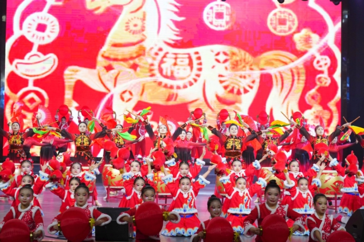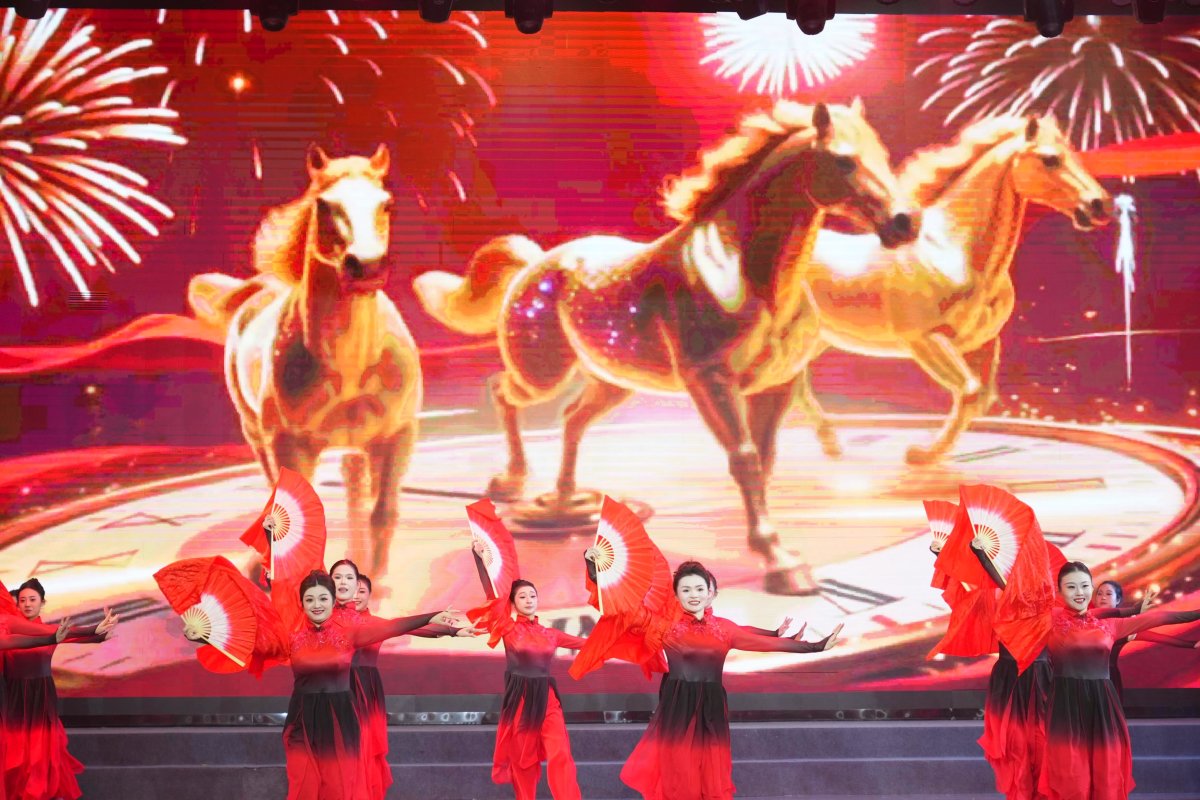 演职人员在台上表演了《春风十万里》、《马年欢歌》、《百花盛开春满园》等欢乐奔放的文艺节目,联欢会不时赢得观众们的阵阵掌声。当天的晚会在喜庆、欢乐、和谐的氛围中圆满落下帷幕。