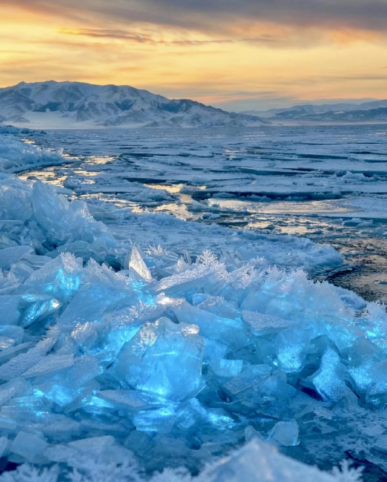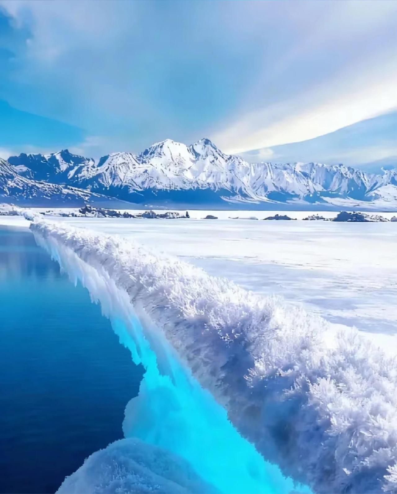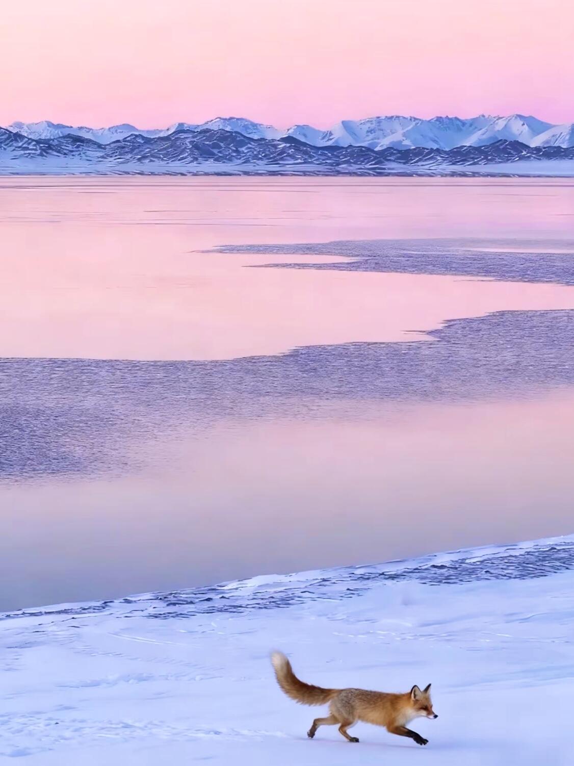 去什么北海道,赛里木湖它不香吗? 这里是童话王国,是大西洋暖湿气流眷顾的最后一滴眼泪。 冬日的赛里木湖,蓝冰如琉璃铺展,冰推如浪,冰花绽放,每一步都踩在自然写就的诗行里。远处雪山巍峨,湖面倒映着粉紫霞光,连狐狸都忍不住在雪地上奔跑,天鹅在冰裂处悠然游弋。 不必远赴他国,在新疆的怀抱里,就能遇见最纯净的蓝。当月光洒在冰面,当晨曦染红山脊,你会发现,这滴“眼泪”早已把浪漫刻进每一寸冰晶。 来赛里木湖吧,让风告诉你,什么是中国式浪漫的极致。