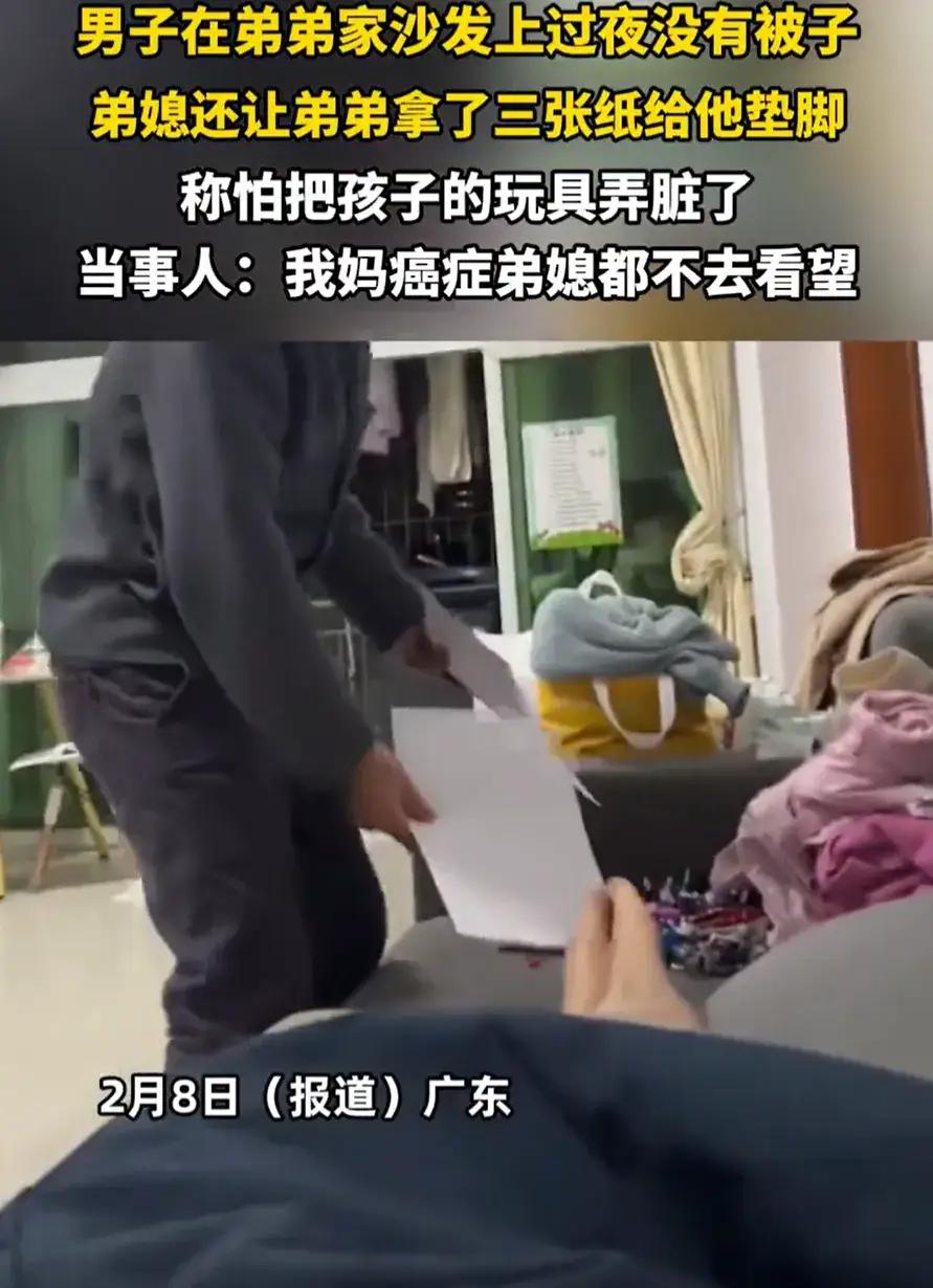 广东有个男的,照顾患癌的母亲整整三个月,弟弟家离医院就20分钟的路,却很少去医院看看。有天晚上,他因为照顾母亲到太晚,就想在弟弟家暂住一晚,弟媳却递过来三张A4纸让他踩着,怕他身上不干净把沙发蹭脏了。男的心里又凉又委屈地走了,就在车里对付了一整晚。 这哪是几张纸的事儿啊,分明是把一家人的情分给撕得稀碎!照料重病的亲人本来就够辛苦的了,最该有人搭把手的时候,却遇到这样冷冰冰的对待,真让人心里不是滋味。 血缘关系可当不了亲情的“挡箭牌”。平时凑一起热热闹闹称兄道弟,真到有事了就躲躲闪闪,这样的亲人,还不如认识没多久的陌生人实在。真正的亲情啊,应该是在对方撑不住的时候搭把手,而不是在对方累得快撑不住时,再往人家心上捅一刀。 这事儿在网上传开后,不少网友都在说自己遇到过类似的事。其实亲人间的伤害,往往不是少了钱少了物,而是这种从心里看不起人的轻慢最戳心。真遇到困难时拉一把的暖,比平时说再多漂亮话都实在,那才是最珍贵的。 你们有没有遇见过这样的亲人?人在难处的时候,家人是啥态度,一眼就能看出真心假。 亲人照顾
