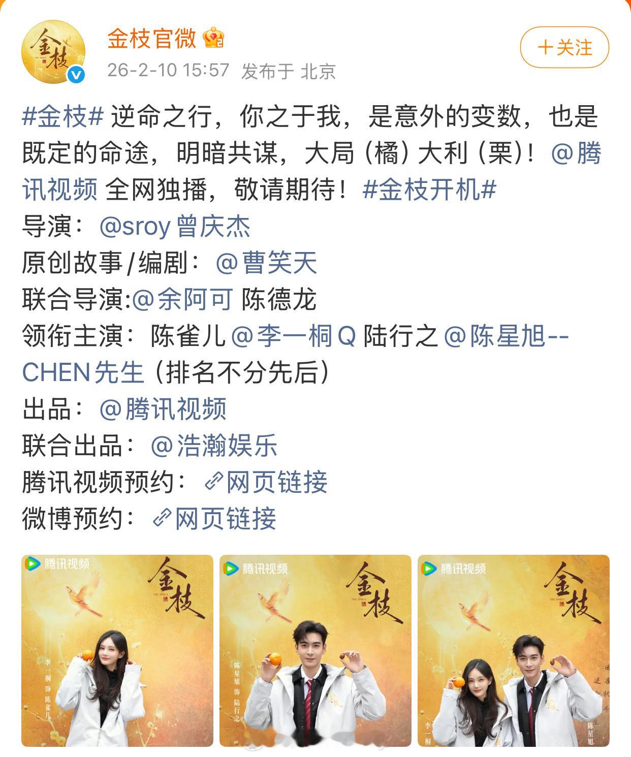 李一桐 陈星旭 (排名不分先后)金枝开机图来了
