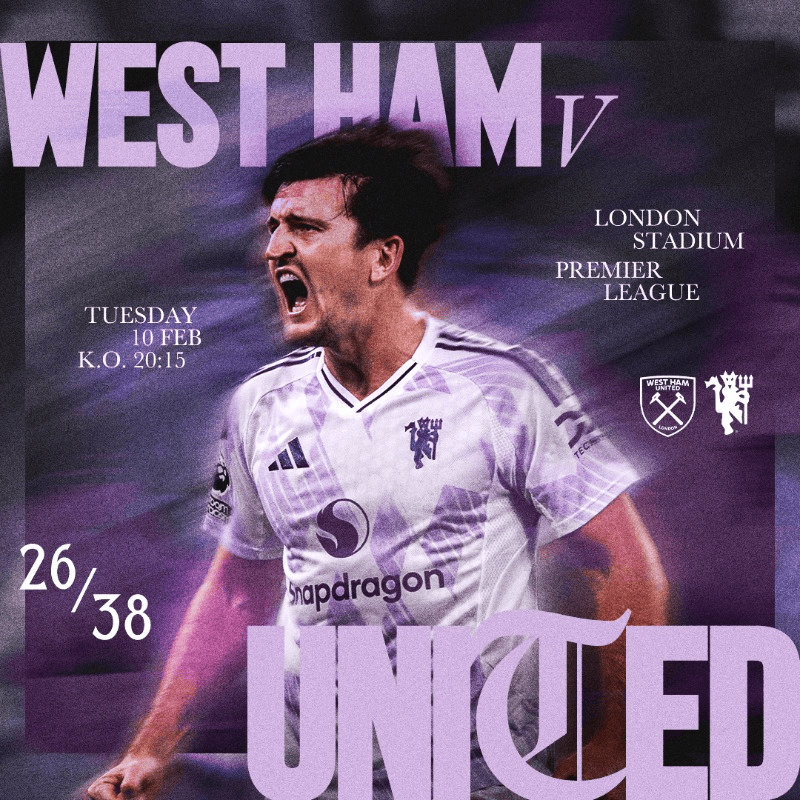 虎扑02月10日讯北京时间明天凌晨4点15分,英超联赛第26轮,曼联做客挑战西汉姆联。赛前,曼联官方发布了赛事预告海报,马奎尔出镜。