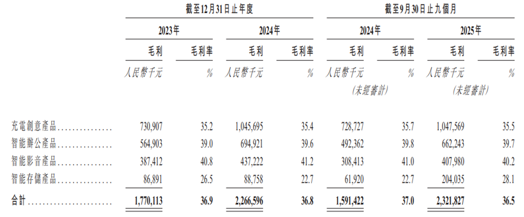 更严峻的是,行业集中度正在提升,长尾厂商加速出清。头部企业凭借供应链规模效应、技术研发优势挤压中小玩家空间,而绿联科技的核心产品仍面临同质化竞争。以充电创意产品为例,其2025年前三季度毛利率仅35.5%,低于智能办公的39.7%和智能影音的40.2%,反映出该品类价格竞争激烈,盈利空间被持续压缩。