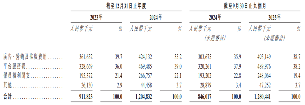 线上渠道依赖是销售费用高企的核心原因——公司大部分线上销售通过亚马逊、天猫等第三方平台完成,平台佣金、广告推广费用持续上涨,进一步侵蚀利润空间。仅2025年前三季度,计入销售开支的“平台服务费”及“广告营销及推广费”这两项就分别达到4.89亿元、4.95亿元。