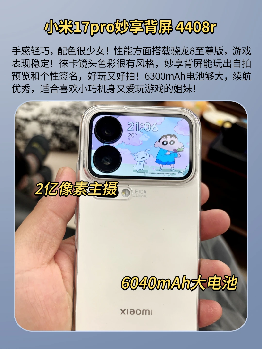 手感轻巧,配色很少女!性能方面搭载骁龙8至尊版,游戏表现稳定!徕卡镜头色彩很有风格,妙享背屏能玩出自拍预览和个性签名,好玩又好拍!6300mAh电池够大,续航优秀,适合喜欢小巧机身又爱玩游戏的姐妹!