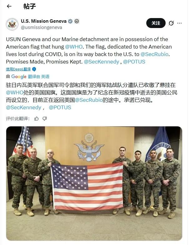 美国强盗的嘴脸,在联合国世卫组织面前显露无疑 日前,有外国网友曝光一幕荒诞闹剧:美国驻日内瓦使团竟出动海军陆战队,强行从世卫组织总部抢回被暂扣的国旗,将霸权无赖嘴脸暴露无遗。 事情起因十分清楚:今年1月,特朗普政府再次宣布美国退出世卫组织,打算“一拍两散”。世卫组织依规提出,要求美方先清偿拖欠的1.3亿美元会费,再允许取回悬挂在总部的美国国旗。 但特朗普政府向来是“只退群、不买单”,怎可能乖乖掏钱? 鲁比奥与美国卫生部长肯尼迪随即公开发声威胁,扬言世卫组织若不交出国旗,美国将直接动手强行夺回。 这份威胁并非空话。声明发布仅四天,美国驻日内瓦使团便在社交平台高调官宣:驻瑞海军陆战队已进入世卫总部大楼,强行将国旗抢回。 欠费不还、武力抢旗,美国为了一己私利,彻底无视国际组织规则与外交底线,把单边霸权玩到了极致。世卫组织 美国联合国代表 世卫风波