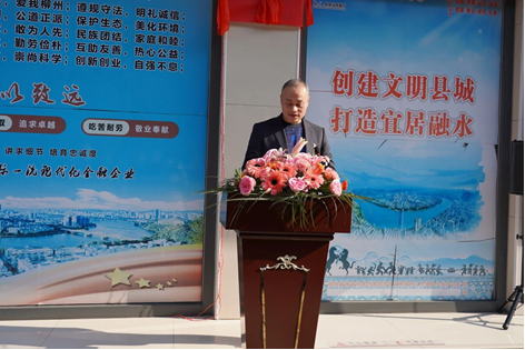 工商银行柳州融水支行行长张谦在揭牌仪式上致辞。