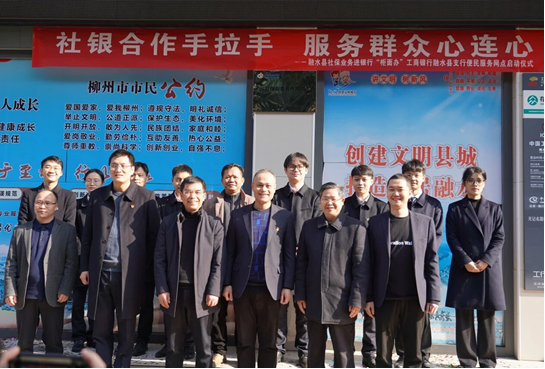 近日,工商银行柳州融水支行联合融水苗族自治县人社局、社保中心,在融水支行营业室举行社保业务进银行“柜面办”便民服务网点启动仪式。社保业务进银行“柜面办”便民服务网点启动后,当地居民可在工行网点办理社保卡申领、激活、注销、参保登记、失业保险金申领等32项高频社保业务,真正实现“进一家门,办两家事”。