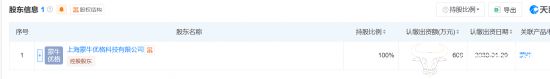 天眼查显示,蒙牛优格(南京)餐饮管理有限公司成立于2026年1月份,注册资本为600万元,由上海蒙牛优格科技有限公司100%持股,而上海蒙牛优格则由内蒙古蒙牛乳业(集团)股份有限公司全资控股,也就是说,南京蒙牛优格实际上就是蒙牛的全资子公司。