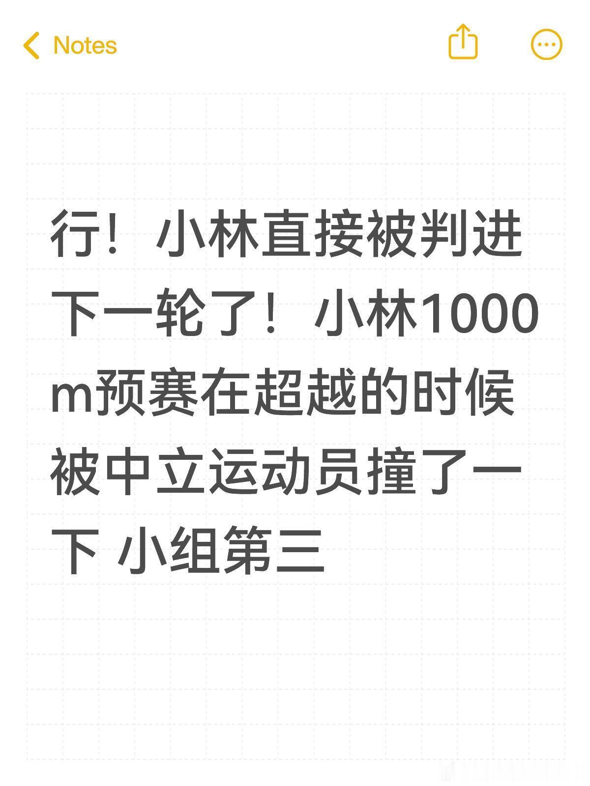 林孝埈1000米被判晋级有惊无险!小林直接被判进下一轮了!小林1000m预赛在超越的时候被中立运动员撞了一下 小组第三!期待接下来都是好运!林孝埈1000米被对手犯规