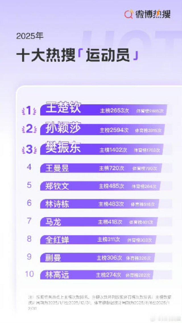 2025体育十大热搜运动员 2025微博体育热搜榜单,十大热搜体育赛事,乒乓球占据前两位,十大热搜运动员,乒乓球运动员占八人!曾经上过国庆花车的女排在哪里呢?!另外,请把参拜过神厕的日本运动员拿下去!乒乓球中国女排
