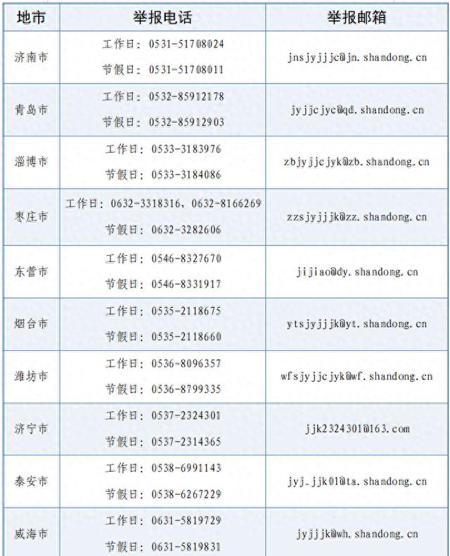 为保障学生假期合法休息权益,持续推进规范管理,山东省教育厅公布了2026年寒假全省中小学违规办学举报电话及邮箱。各地中小学校如存在假期违规加班补课等情况,可拨打相关电话进行反映。