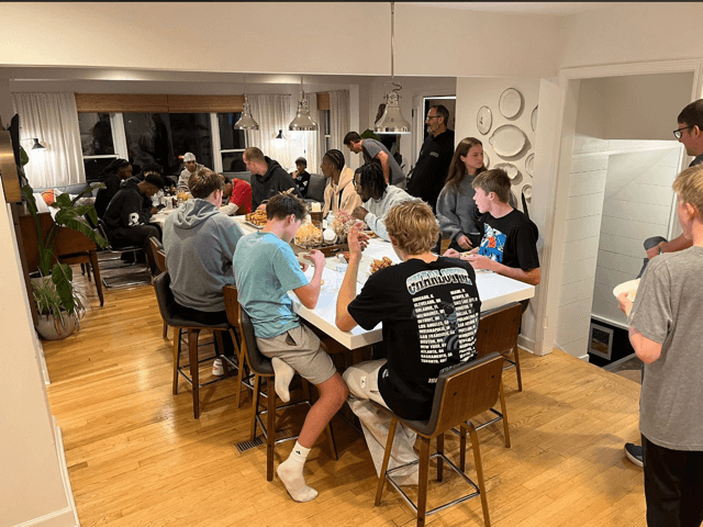 (配图说明:11月,黄蜂队在克尼普尔家吃晚饭的场景。图片