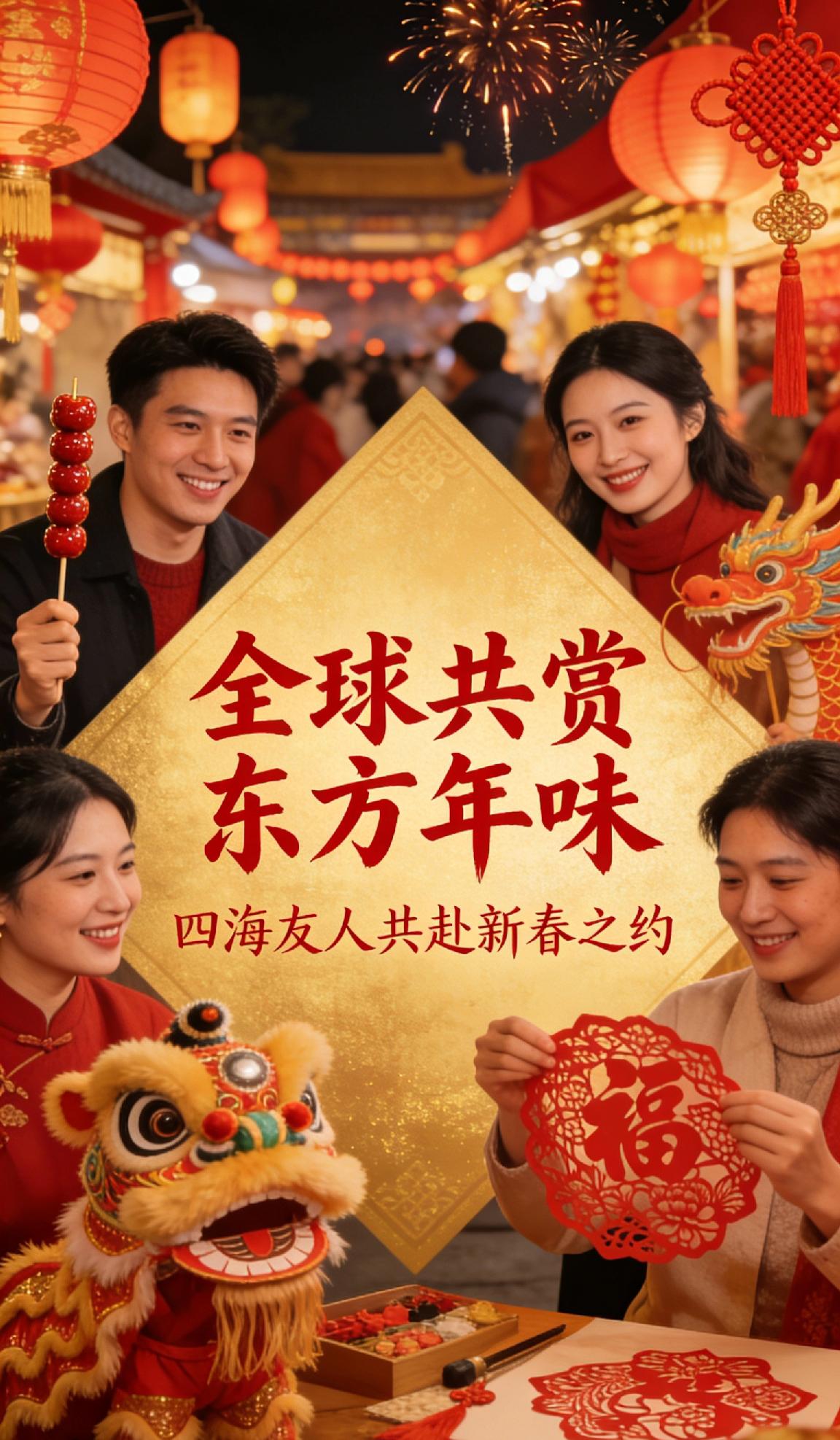 烟火年味暖遍神州,四海友人共赴新春之约。逛庙会、品民俗、享团圆,中国年以独特魅力