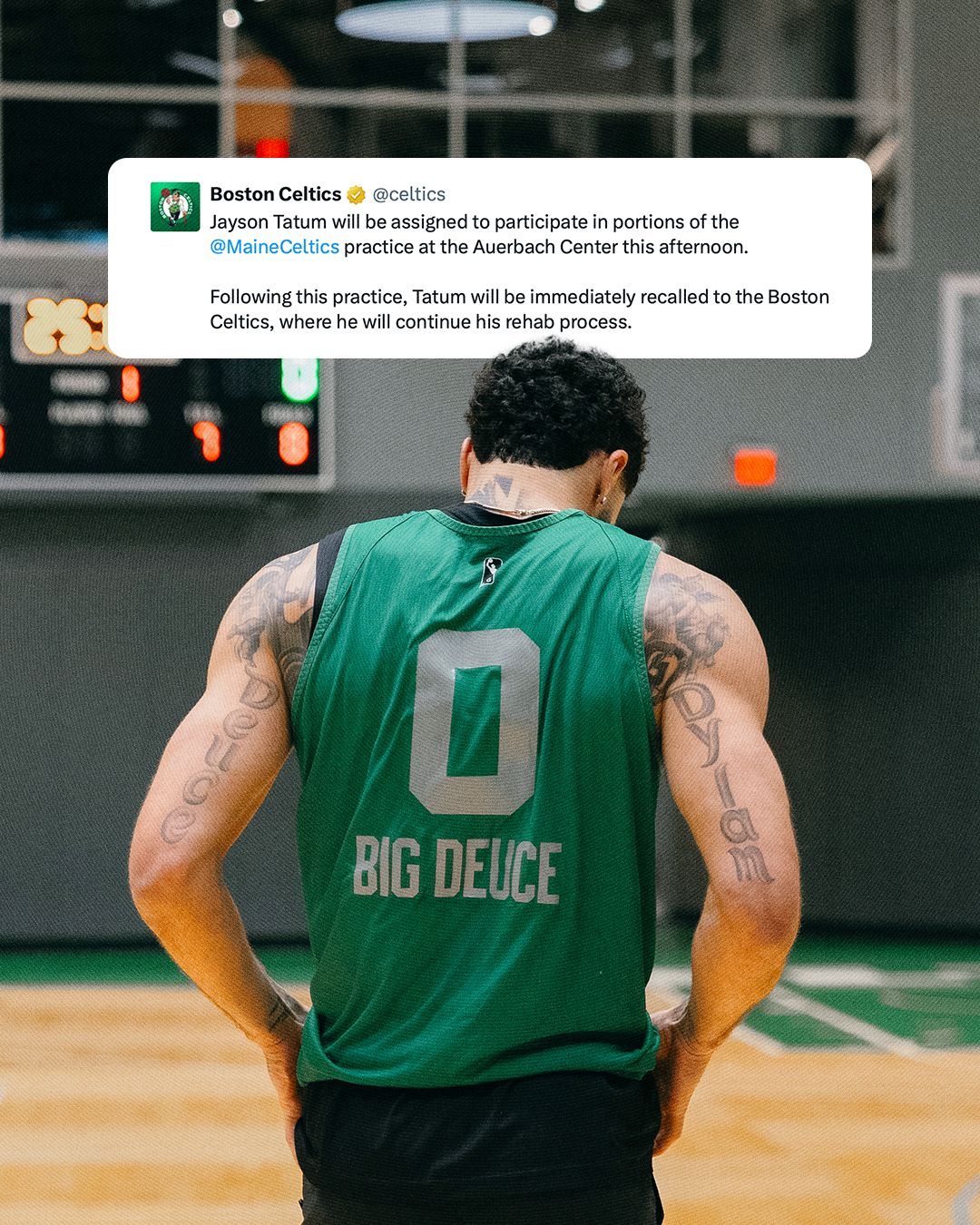 在完成本次训练后,塔图姆将被立即召回波士顿凯尔特人,并继续进行康复恢复流程。