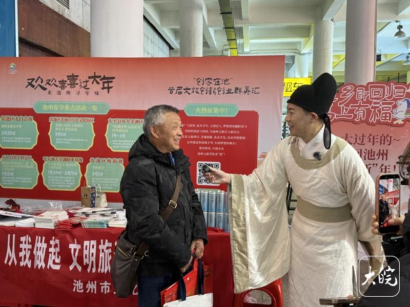 活动现场,池州市文旅局工作人员还主动为旅客推介池州各地春节文旅活动与特色文旅资源。不少旅客表示,正是池州秀美的自然风光与浓郁的新春氛围吸引了自己,计划在池州深度游览,体验别样的池州年俗。