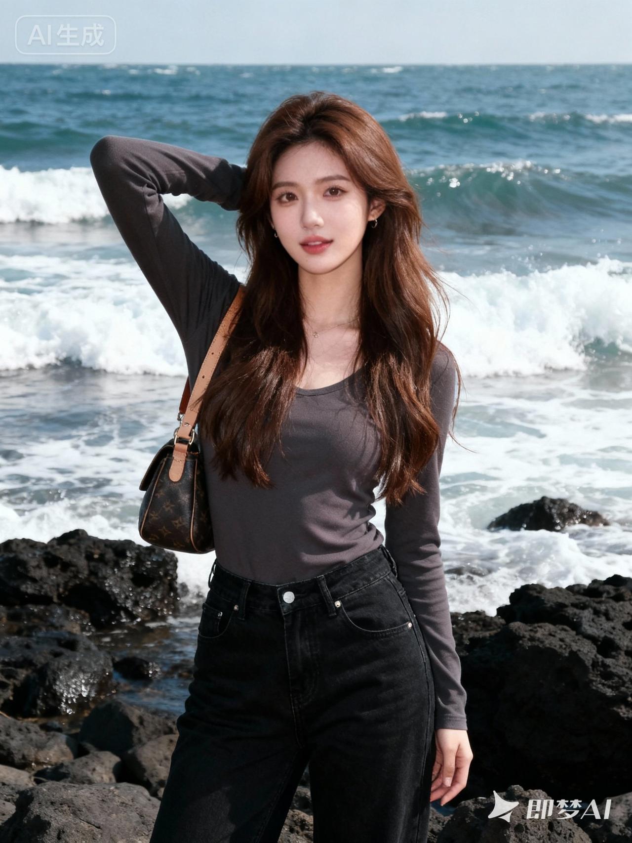 今年冬天的不同御姐风,棕色长发,时尚前卫,长袖,黑色牛仔裤女生怎么穿紧身裤才好看