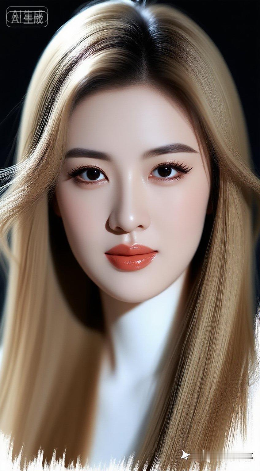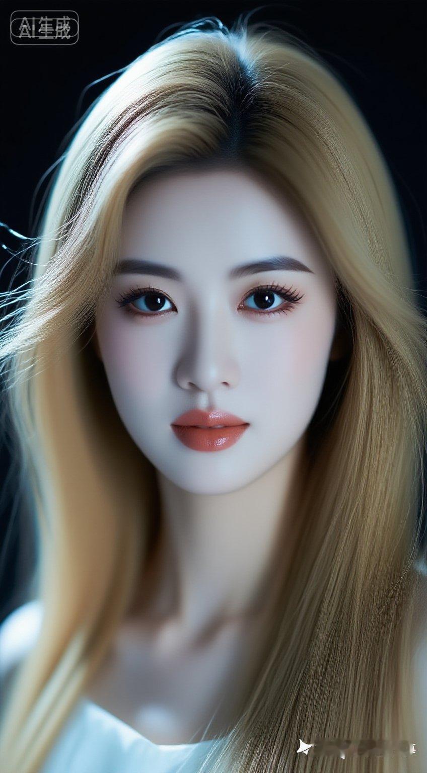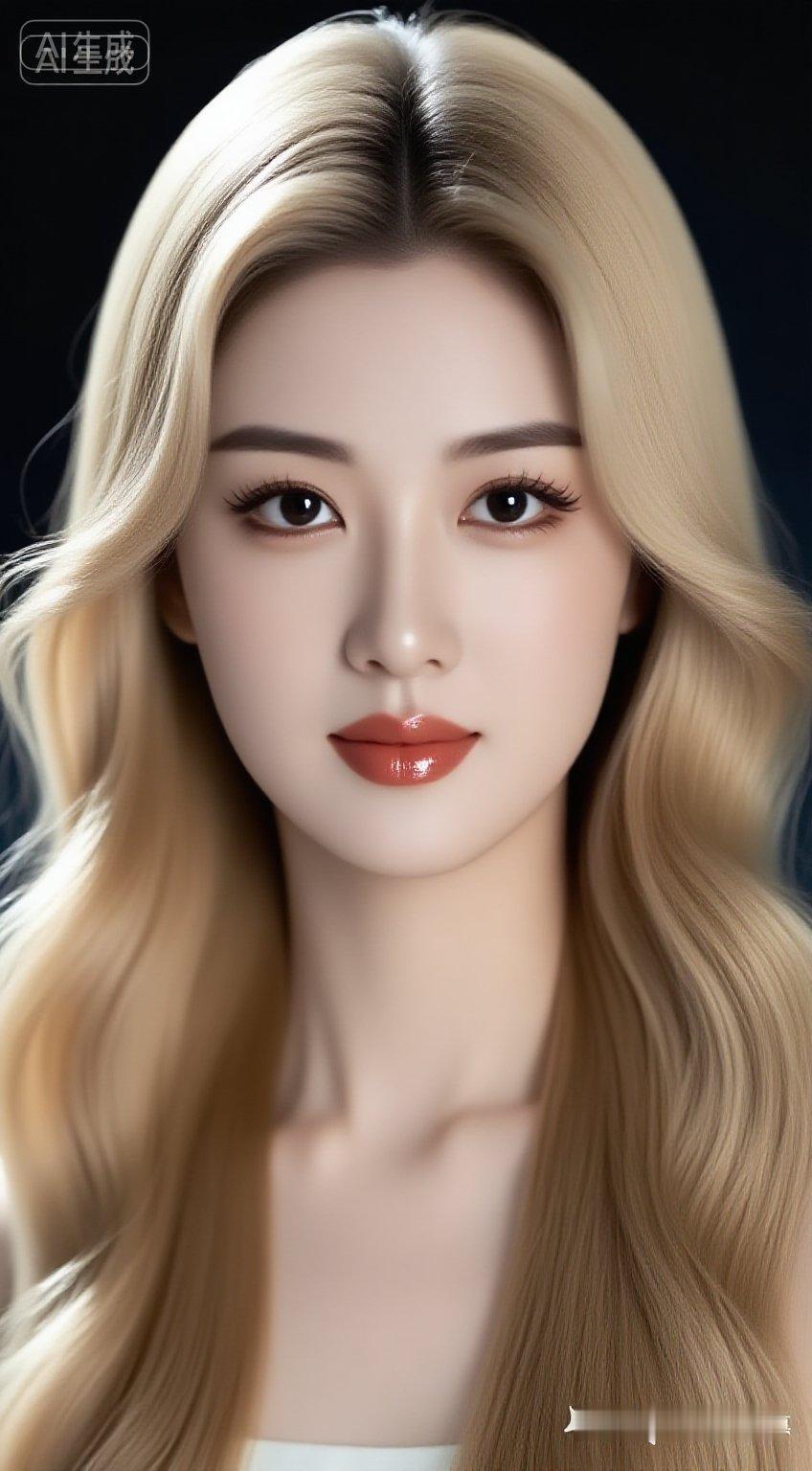 绝美东方女性,金棕色垂坠柔顺微卷长发,蓬松自然,冷白皮,极致的妆容,水润滑嫩,油