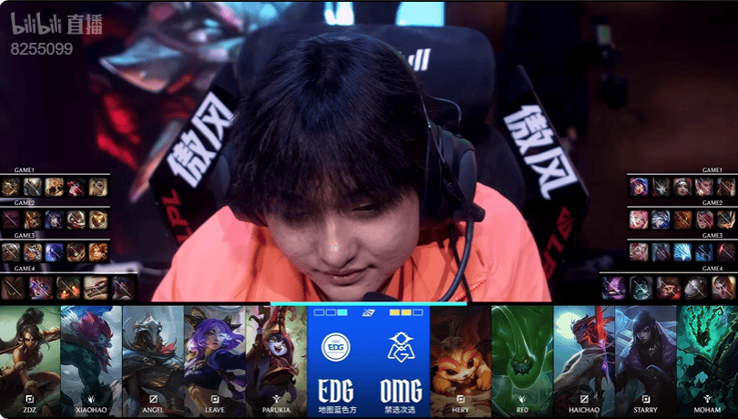 EDG对阵OMG的第四局比赛中,ZDZ选出上单豹女对阵Hery纳尔