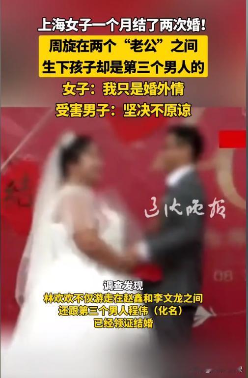 上海,女子先后与2名男子办了婚礼,还生下一个孩子。当这2名男子发现异常并报警后,竟发现孩子的生父并不是这2名男子中的一人,而是另有其人。更令人感到炸裂的是,女子早已经登记结婚了,而且结婚对象还是网上随便找的。当警方询问女子为何如此时,女子的回答令人惊讶。(来源:辽沈晚报) 据悉,林女士为了寻求真爱,与在北京工作的山东小伙赵某开始了网恋。为了追求幸福,赵某不惜辞掉北京的高薪工作,孤身来到上海重新开始。 2021年6月份,林女士发现自己怀孕了,简直高兴坏了。可因为林女士不懂得如何安胎,导致流产了。 为了隐瞒这个情况,林女士便从网上下载了别人的怀孕检查单,然后欺骗赵某说自己怀孕了。 赵某得知林女士怀孕后,没有任何的怀疑,立即与家里人安排了婚礼。期间,林女士并未将此事告知父母,而是找人假扮父母与赵某的家人见了面。 2021年10月份,林女士和赵某举行了婚礼仪式,但二人并未领证结婚。而在二人同居生活期间,林女士还与比她大了10多岁的一位民宿老板李某保持着暧昧关系。 在处理完与赵某的婚事后,林女士又找人假扮父母与李某的父母见了面。期间,李某的父母还给了8.8万元的彩礼。在同年11月份,林女士与李某在浙江老家办了婚礼仪式。 由于李某比赵某优秀太多,虽然年龄大了一点,但林女士还是向赵某提出了分手,打算与李某长相厮守。 可没想到,李某的民宿生意突然黄了,他躲回了老家,开始与林女士长期分居。 期间,林女士再次怀孕,并且生下了一个女儿。 赵某得知后,认为孩子是自己的,可当初林女士出具了怀孕检查单,且明确表示是个儿子。因此,赵某忍不住询问林女士到底怎么回事。 林女士被赵某问烦后,只得将已婚事实告知了赵某,这可把赵某气坏了,当即选择了报警。 李某这边也获悉了林女士生下女儿的消息,他认为女儿是自己的,希望能把女儿带回家给父母看看。可当李某得知林女士已婚后,也选择了报警。 后经警方调查,这个女婴的亲生父亲不是赵某也不是李某,而是林女士谈的第三个男友的。 不仅如此,警方还调查发现,林女士早在2017年就已经领证结婚了,而结婚对象是她网上随便找的男子程某。 这林女士和程某都是被父母逼婚太紧,所以才选择随便找个人领取结婚证,但双方各玩各的,互不干涉。 在派出所同时面对赵某和李某时,林女士的态度十分的淡定,她认为自己就是婚内出轨,大不了就退点彩礼。 然而林女士想得有点太简单了。 在民法中,婚姻的认定是以去民政部门办理结婚登记为准,已经取消了对事实婚姻的认可。 但在刑法中,“事实婚姻”还是存在的,不过就是改了个说法,只要符合对外以夫妻名义共同生活的条件,就可以认定“事实婚姻”的存在。 《刑法》第258条规定,有配偶而重婚的,或者明知他人有配偶而与之结婚的,处2年以下有期徒刑或者拘役。 上述规定中,虽然没有明确以夫妻名义共同生活作为定罪条件,但在法律实践中,像林女士这样已经登记结婚的,还分别与赵某、李某举行婚礼仪式,这无疑是在对外宣称自己与赵某、李某存在夫妻之实了,符合有配偶而重婚的条件。 因此,林女士的行为已经构成了重婚罪。 此外,林女士隐瞒结婚事实,还找人假扮父母与赵某和李某分别举办了婚礼,并收取了彩礼,这一系列的行为,足以说明林女士存在诈骗的事实。 因此,林女士的行为还可能构成诈骗罪,应当对其数罪并罚处置。 最后,这里要提醒各位男性朋友,在找女友时千万不要被美色迷惑,在没有了解清楚对方的人品和背景时,也不要轻易同居。男性朋友也要注意保护自己的清白。 对于此事,您有什么看法?欢迎留言交流。