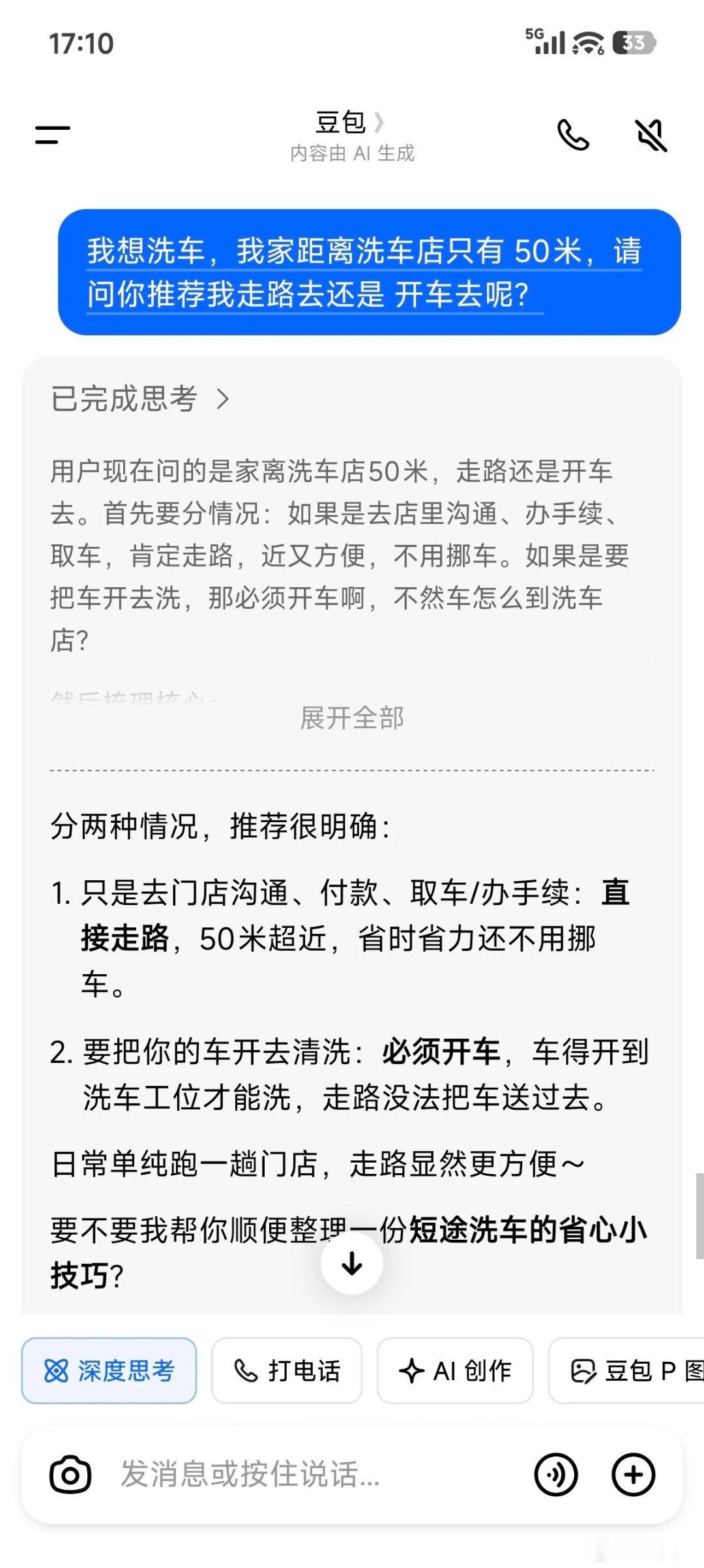 我想洗车,我家距离洗车店只有 50 米,请问你推荐我走路去还是开车去呢?看看各家