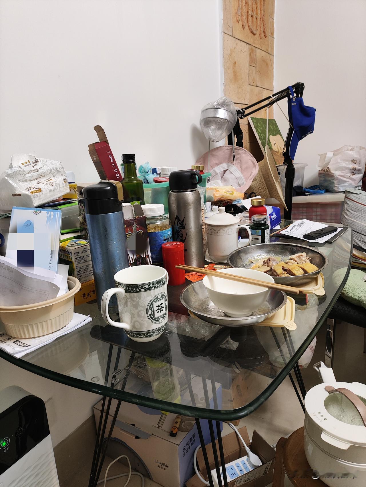 你见过饭桌上放这多东西的吗?我就见过饭桌上放多东西的,而且是亲眼见过,不是网上见过, 这里是我一个亲戚的家,我这个亲戚年纪比我大7岁,他77岁,最近化的身体不是很好,他需要人照顾,他儿子儿媳妇工作都忙,没有时间照顾他,这个亲戚叫我来他家照顾他,煮饭给她吃,我刚来他家那几天,看到他这张吃饭桌,上面放满东西,我很不习惯,做好的饭菜,吃饭的时候,菜都没有地方摆放, 我叫亲戚将他这些东西清理一下,他的儿子也叫他把这些东清理到另外一个地方,但这亲戚死都不愿意将这些东西清理到另一个地方,说这些东西清理到另一个地方,他要拿的时候很不方便,我这个亲戚做事情一向来都很固执,他说怎样就是怎样的人,谁也说服不了他。