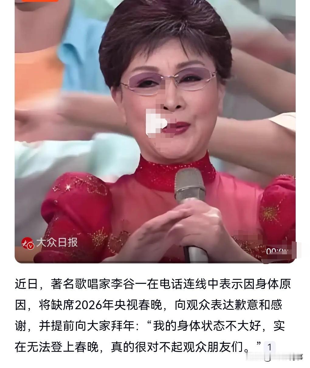 李谷一确认缺席2026年春晚,因为身体不太好,所以会缺席。不过值得一提的是,她已经缺席几年了,也都是因为身体原因。 已经80多岁了,也没有必要上春晚了。 现在最重要的就是安享晚年,那个时间段唱《难忘今宵》,一个老人家肯定熬不住的,没必要。 所以这次李谷一老师在家团圆休息就好,健健康康的就挺好。 没有李谷一老师,我们也不会感到遗憾的。我们只愿李谷一老师好好的。